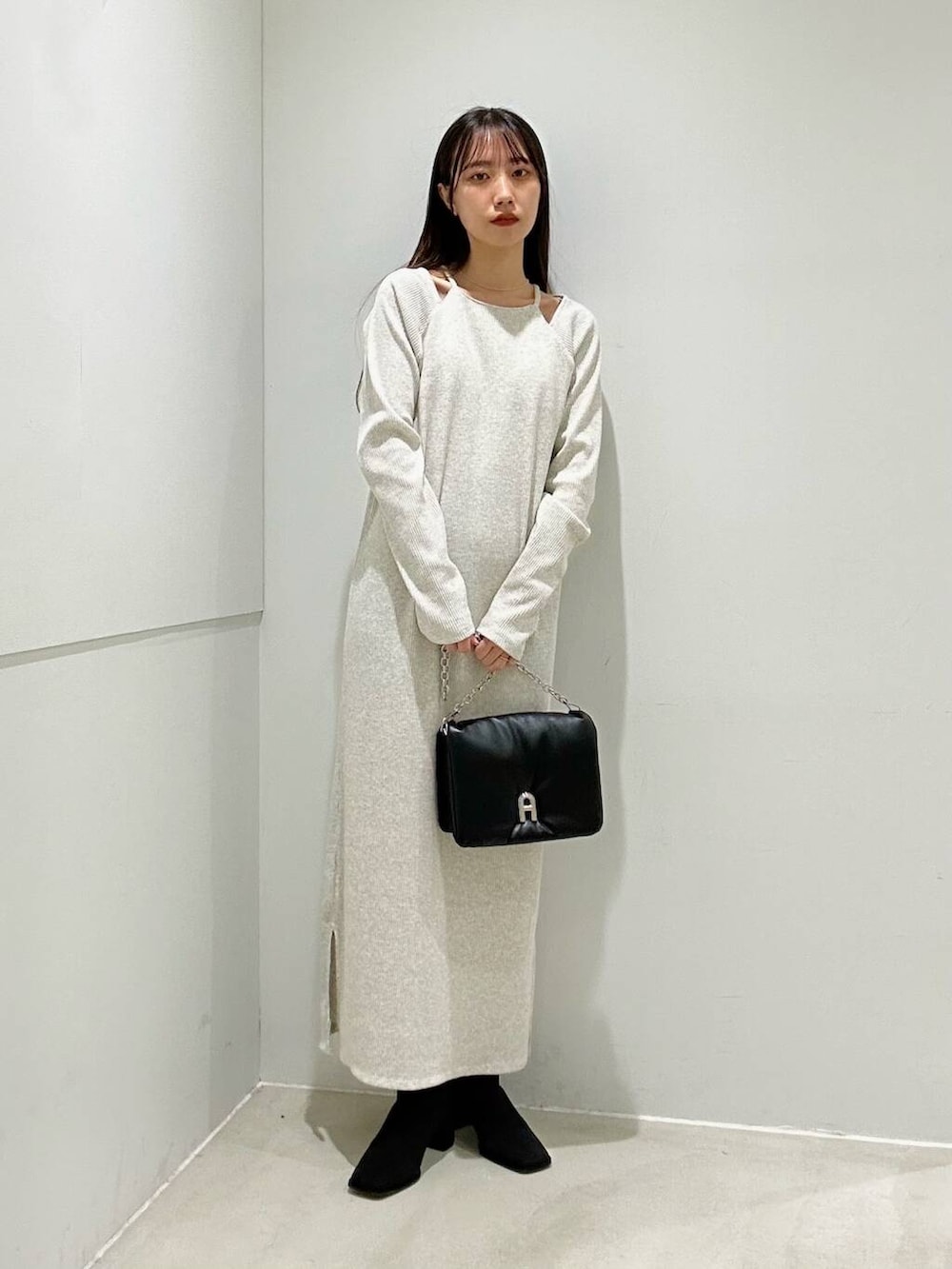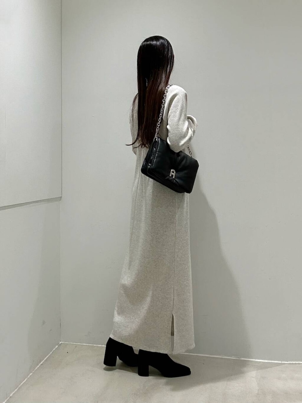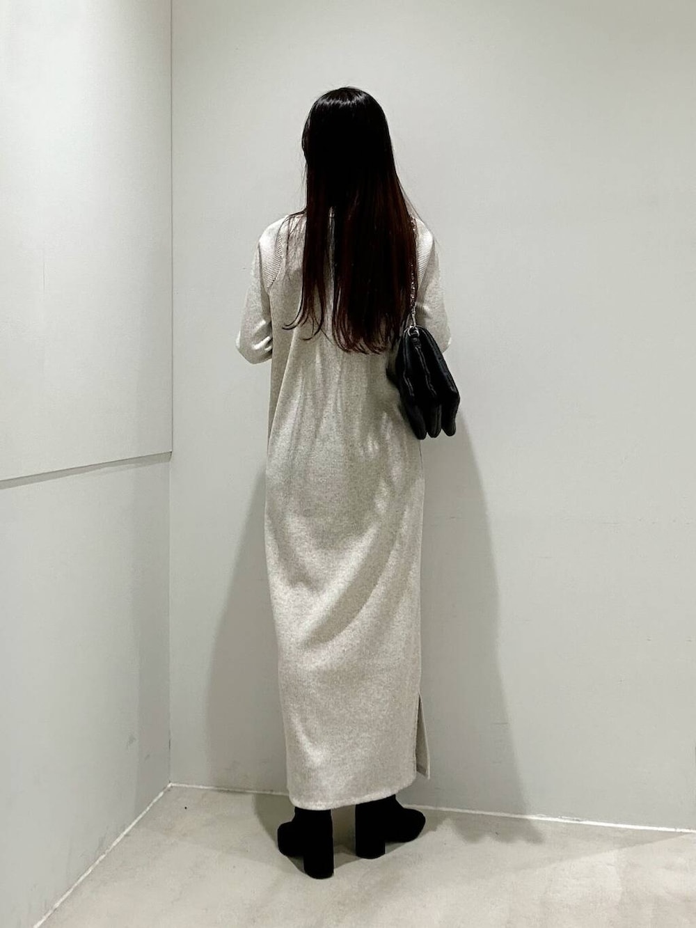 ロングワンピースですが、裾のスリットや首元の肌見せで、抜け感もあり重たくならずに着こなせます👀