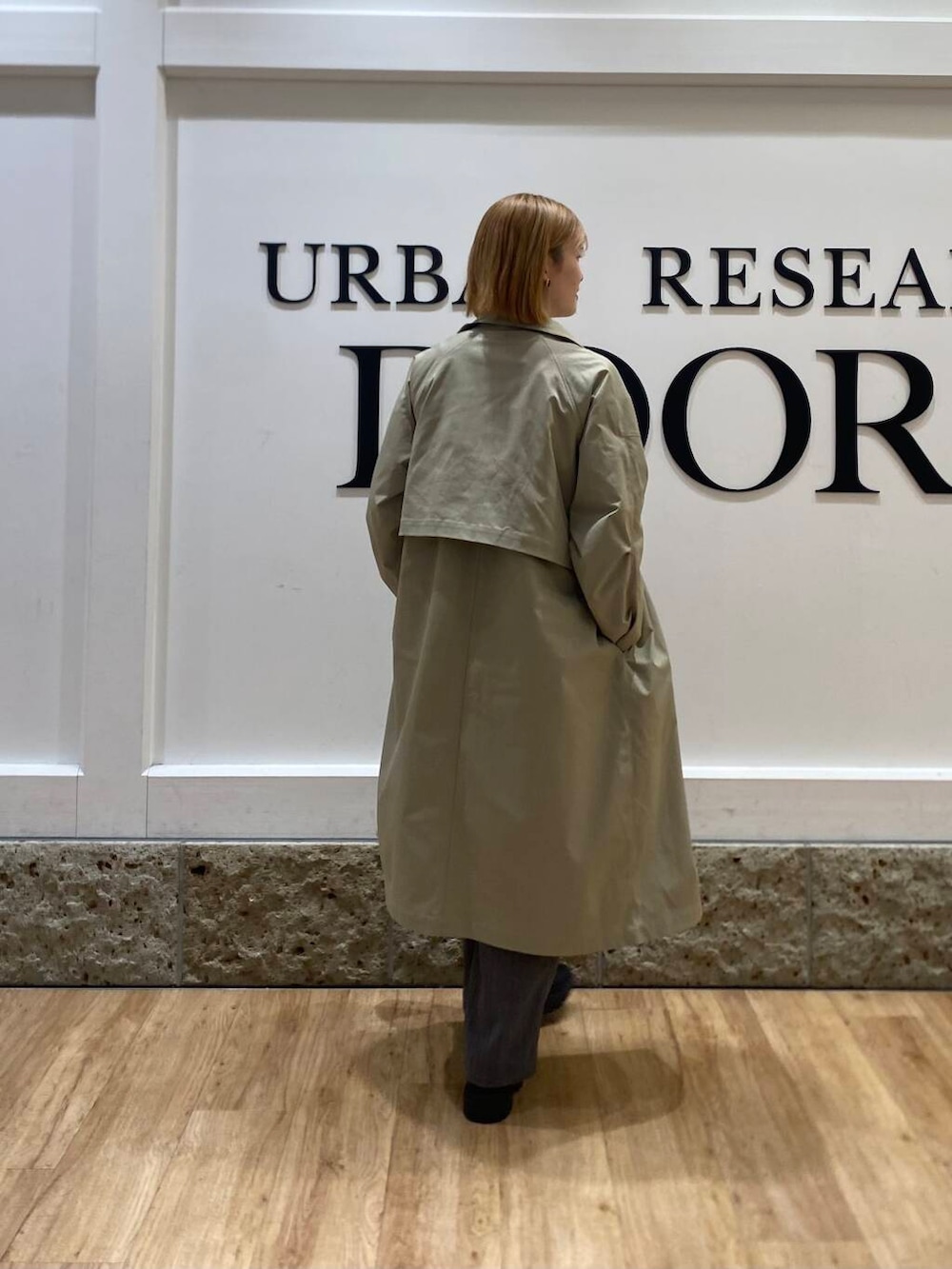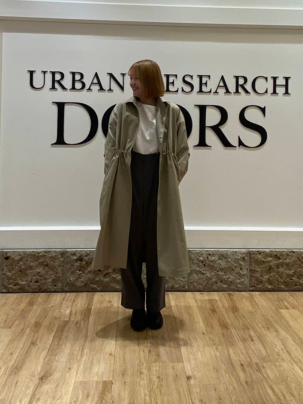 シンプルにアイボリーのトレーナーを合わせて、エカルのトレンチコートを合わせてコーデを組んでみました✨