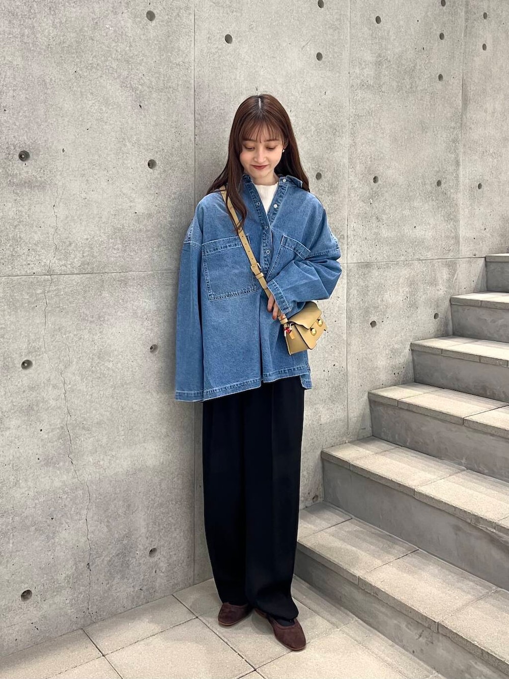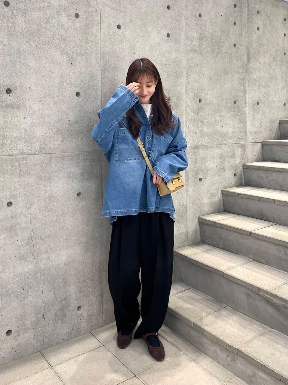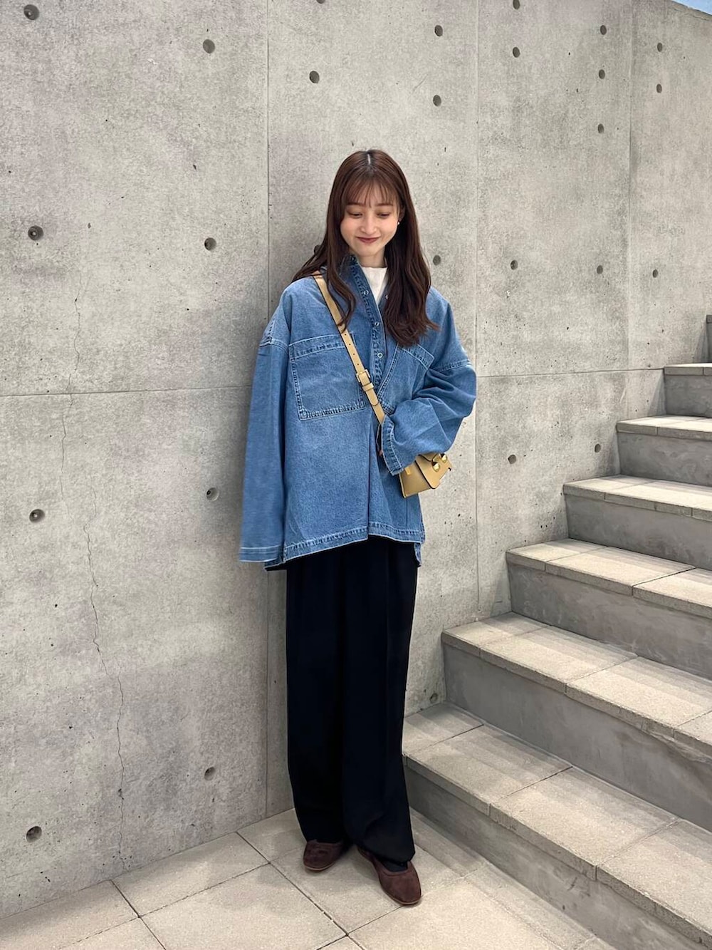 カジュアルになりすぎないよう、落ち感のあるパンツやスカート合わせがおすすめですよ🎶