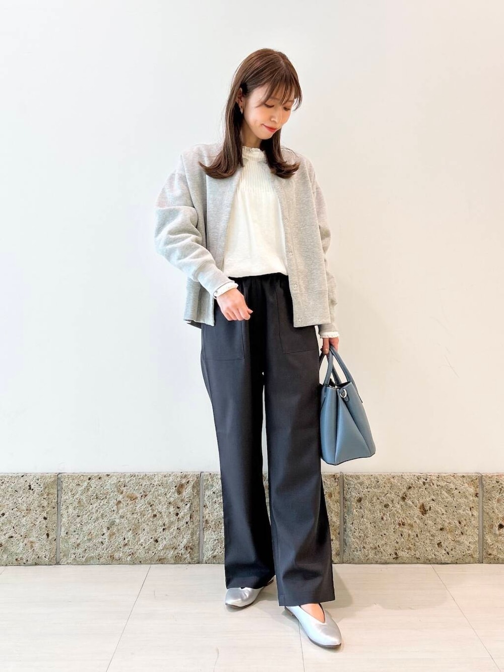 スウェットのカーディガンは何にでも合わせやすいデザインで、今から春先まで活躍してくれますよ♪