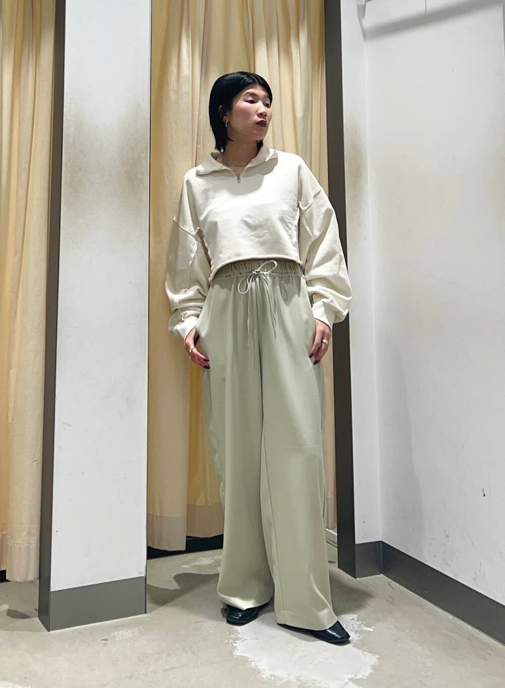 ショート丈のスウェットはハイウエストのボトムと合わせて