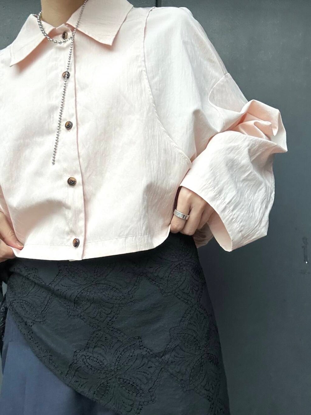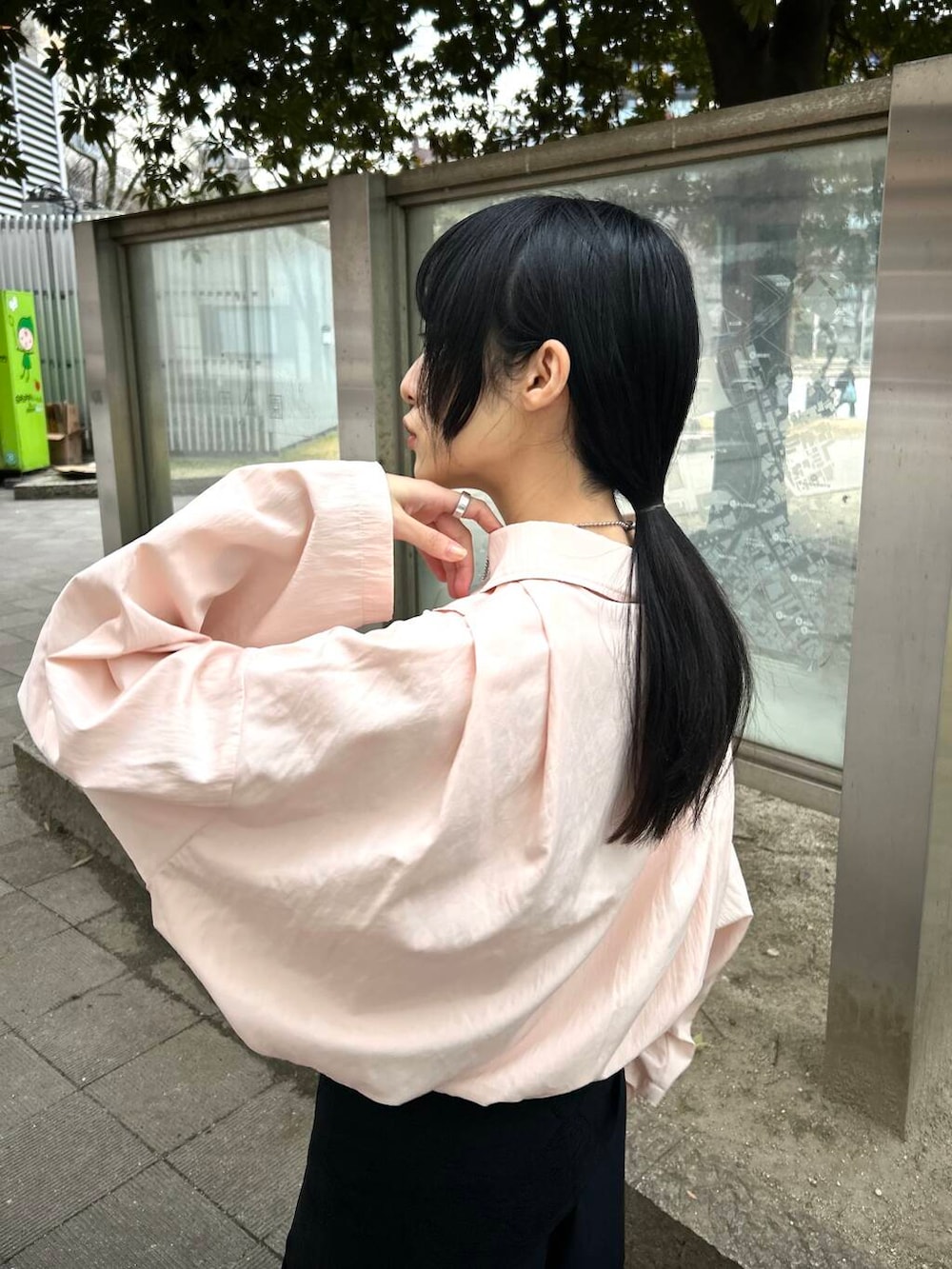 うしろのギャザーが可愛いシャツは、一枚で可愛く、着回しもしやすいアイテムです!