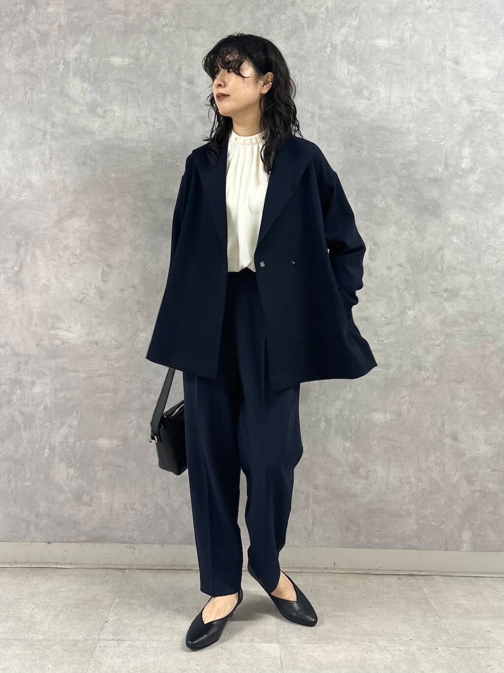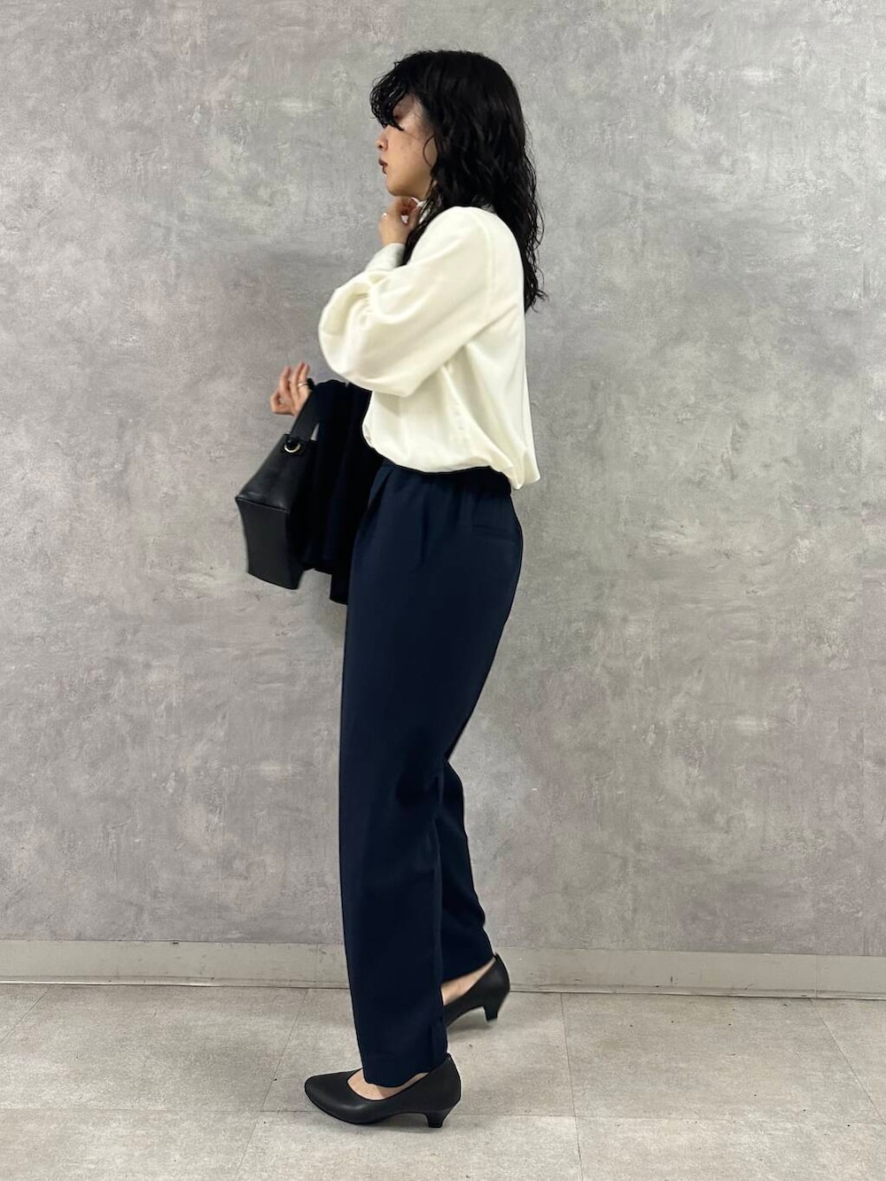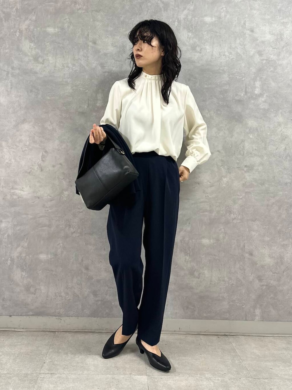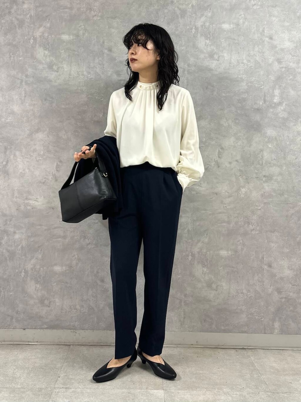 今回はタックブラウスを合わせての、オフィススタイル兼用のバランスに。