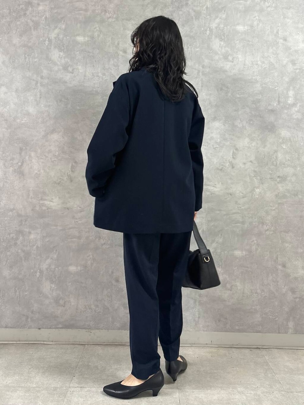 スラックスはゆるっとしたテーパードシルエットで履き心地楽ちんですが、きちんと見えする光沢のある生地なので、普段使いはもちろん、卒入学シーズンのスタイルにもおすすめです。