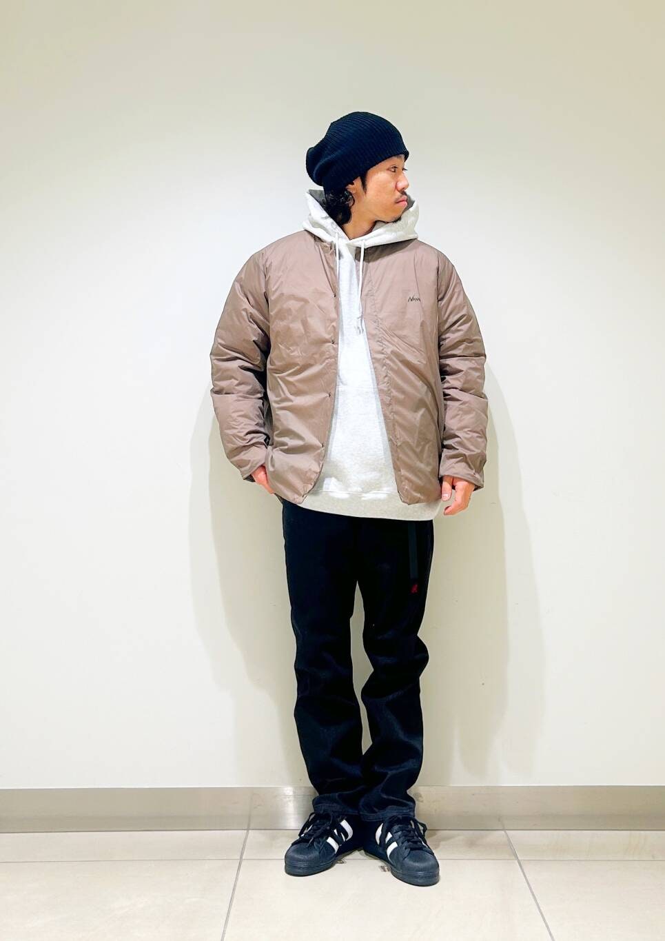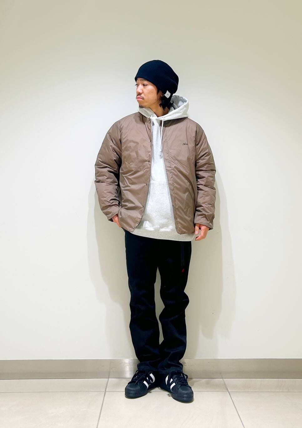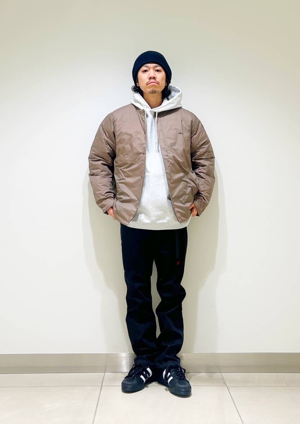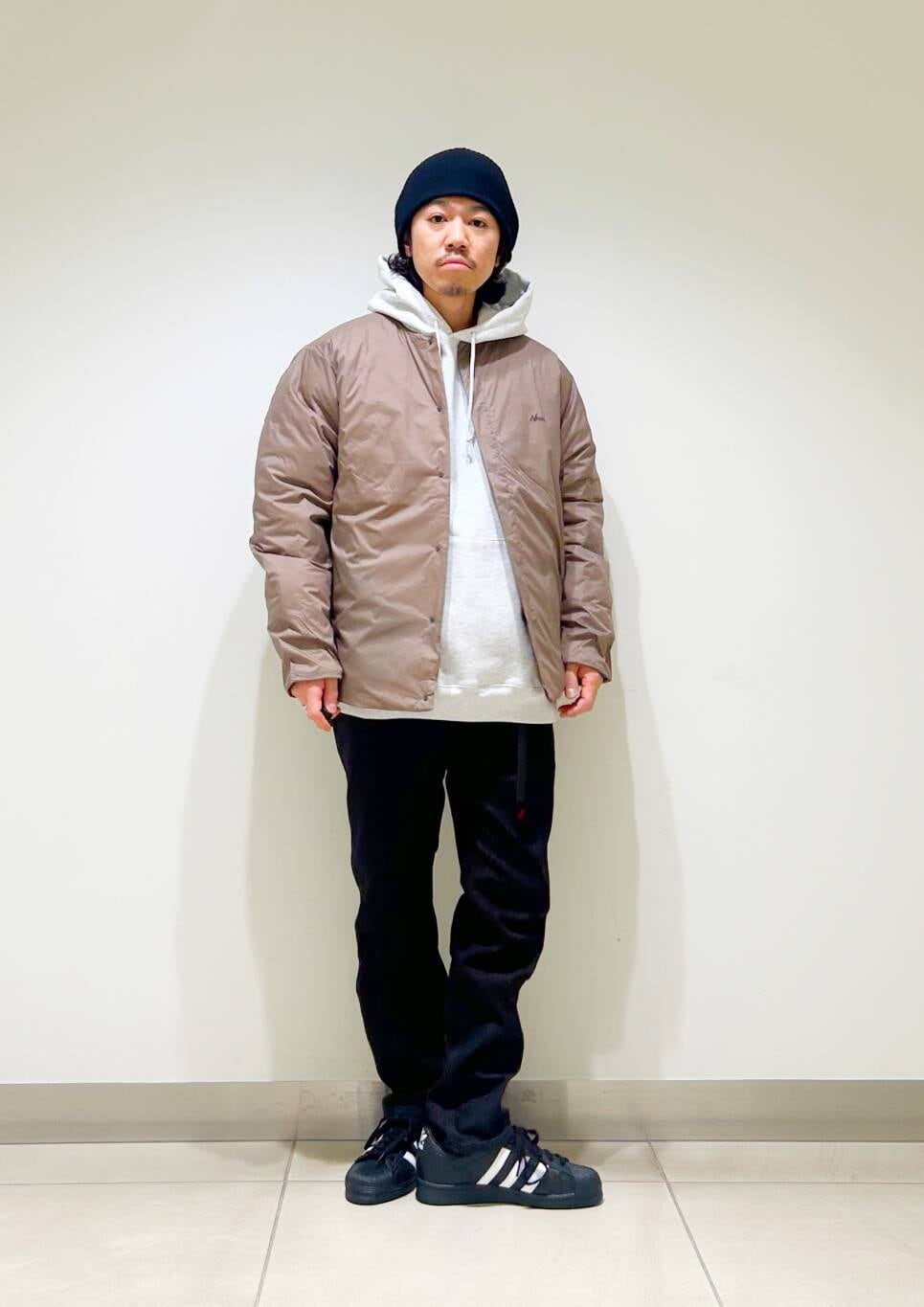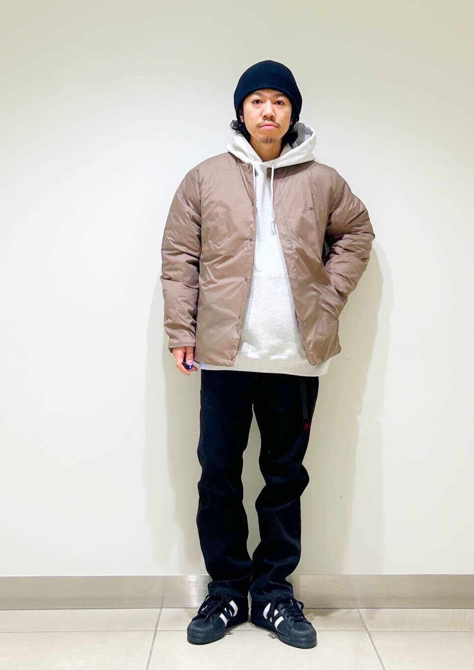 今回はNANGAインナーダウンとパーカーを使用したコーディネート。