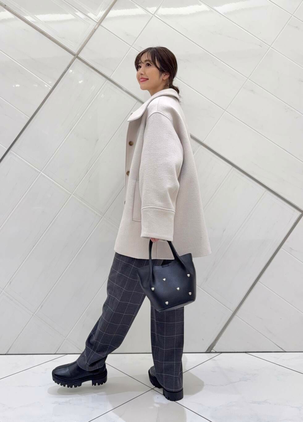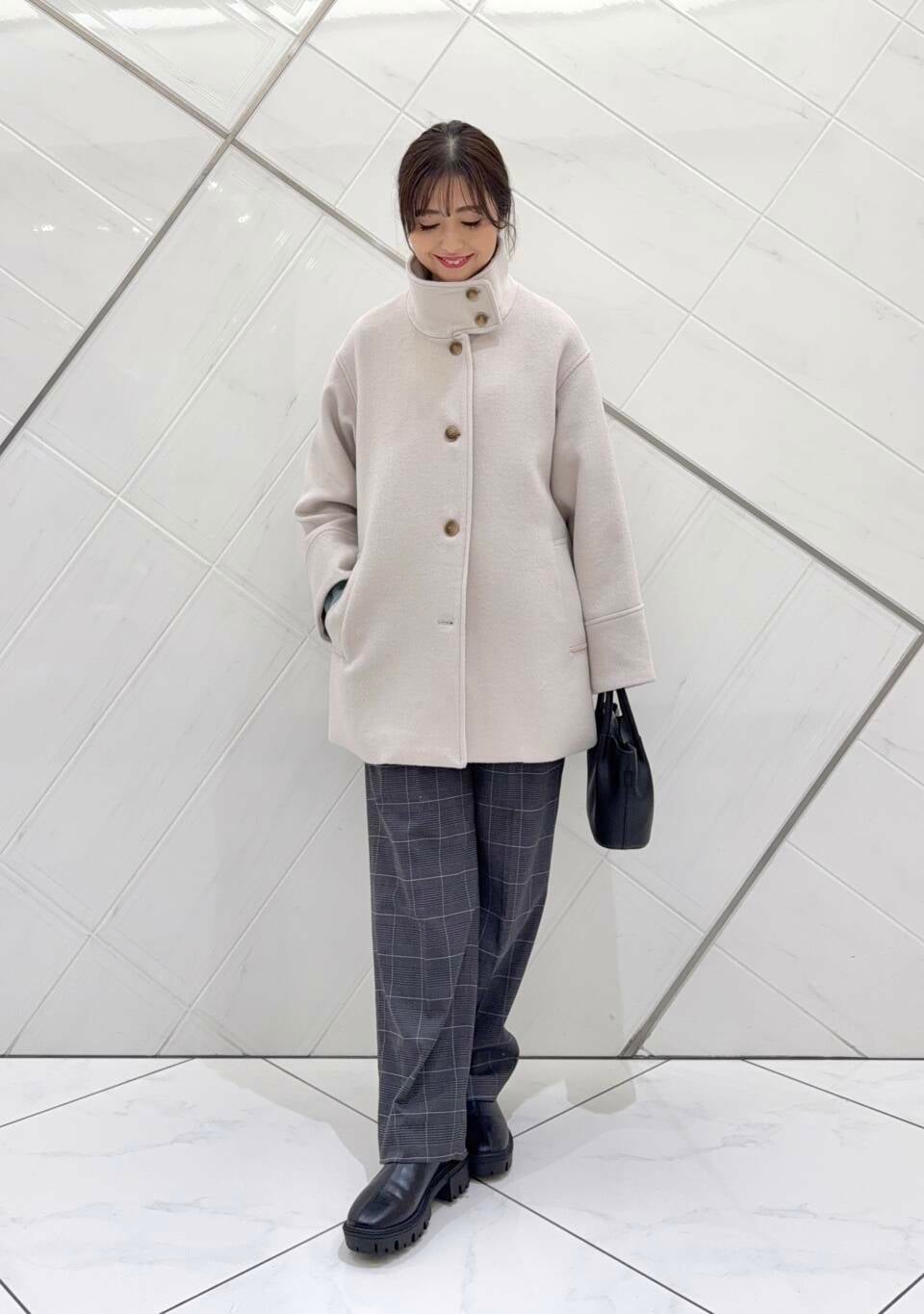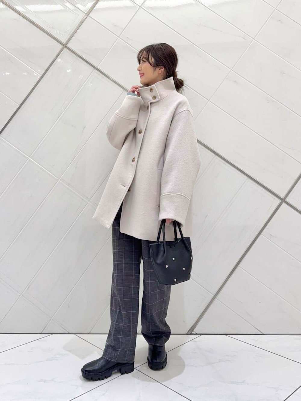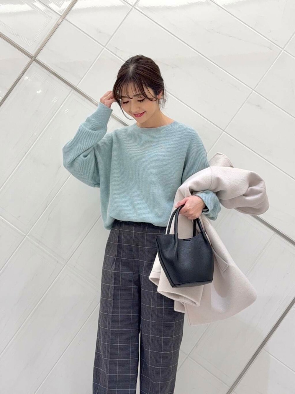 パンツはコーディネートのアクセントになるチェック柄でゆったりめのストレートシルエットです。Sサイズでウエストにゆとりがあります。
