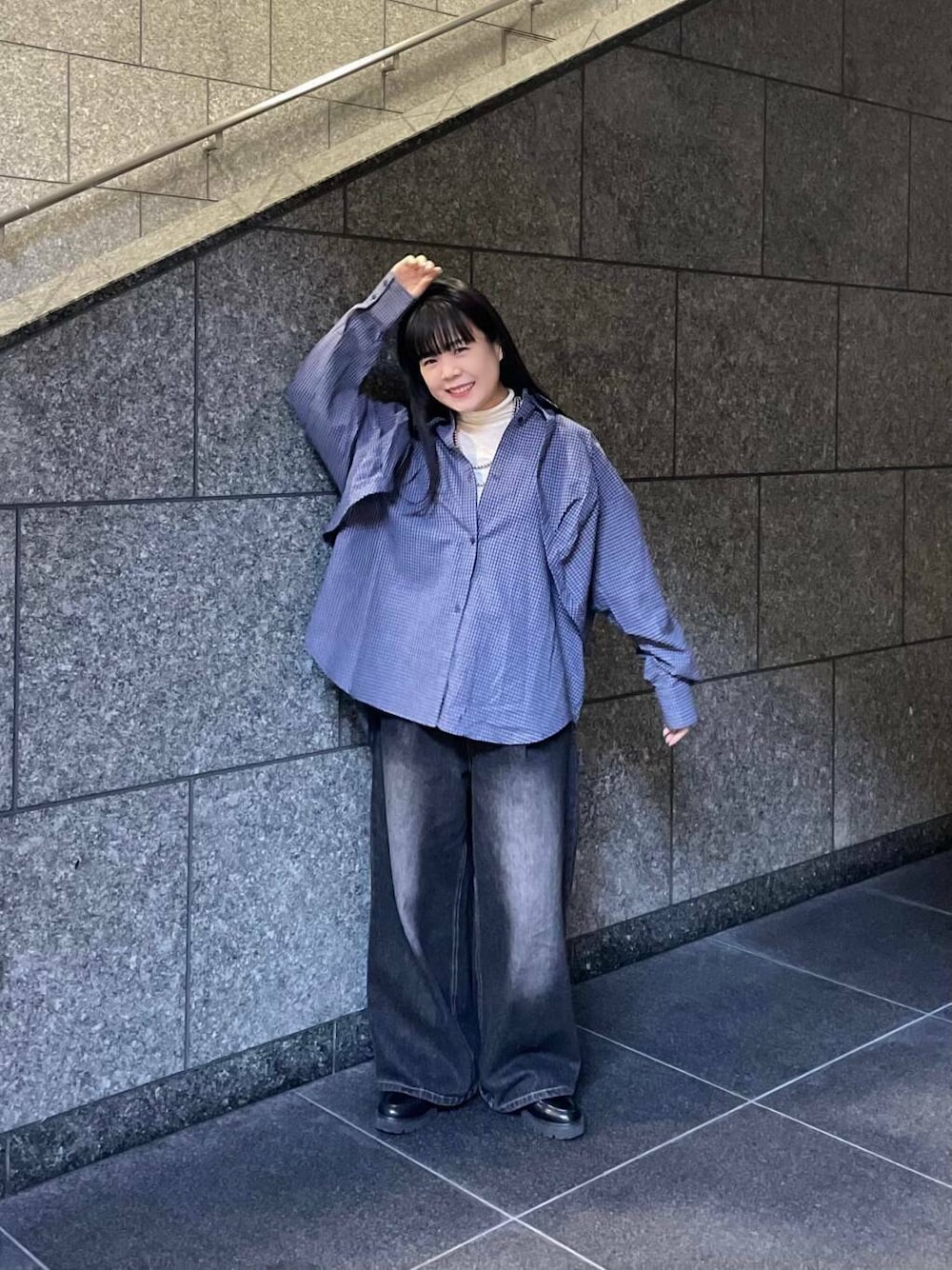 オーバーサイズのシルエットで細かいチェック柄なので子供っぽくなりすぎないデザインが◎