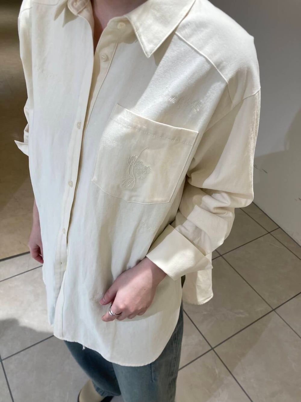 シャツと同色の刺繍が、主張しすぎず春の雰囲気を作ってくれるKBFらしいデザインです!