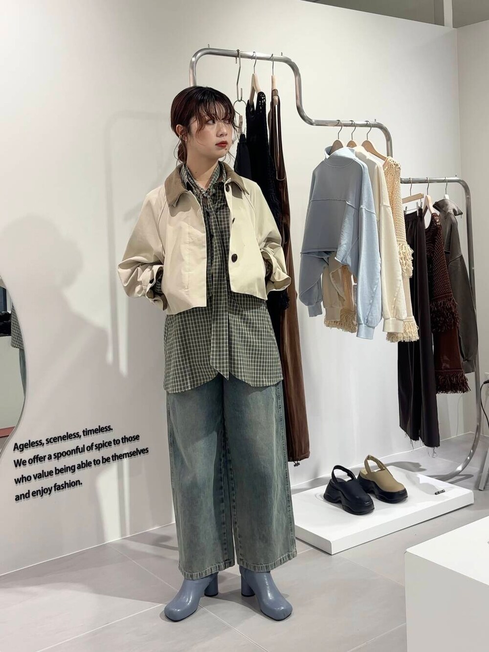 あえてショートのコートと合わせることでレイヤードスタイルも楽しめて👌🏻