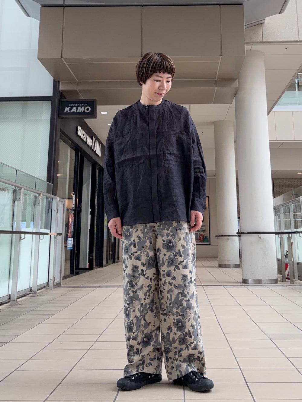 ボトムも何にでも使えそうなシンプルなパンツを合わせました。