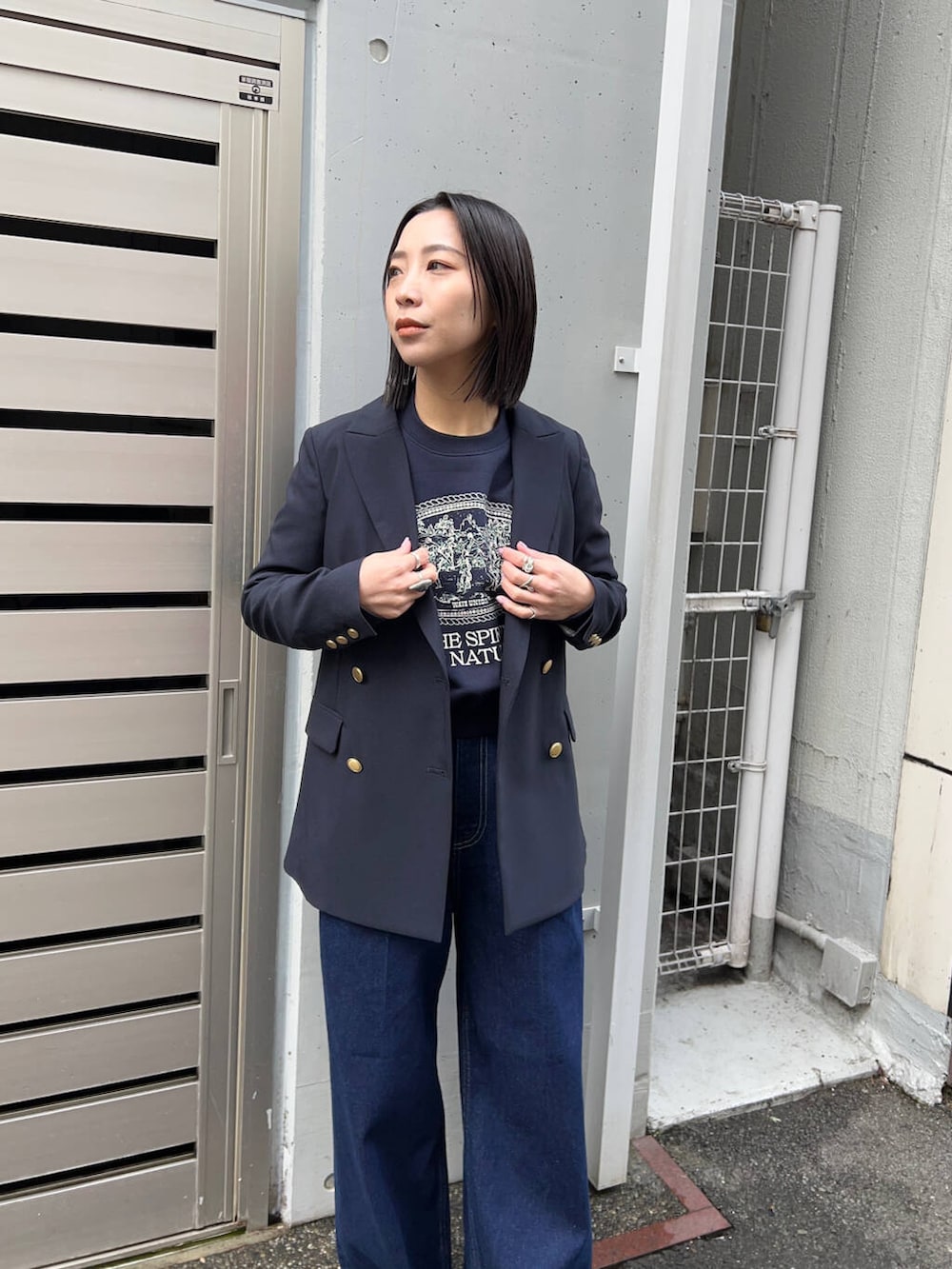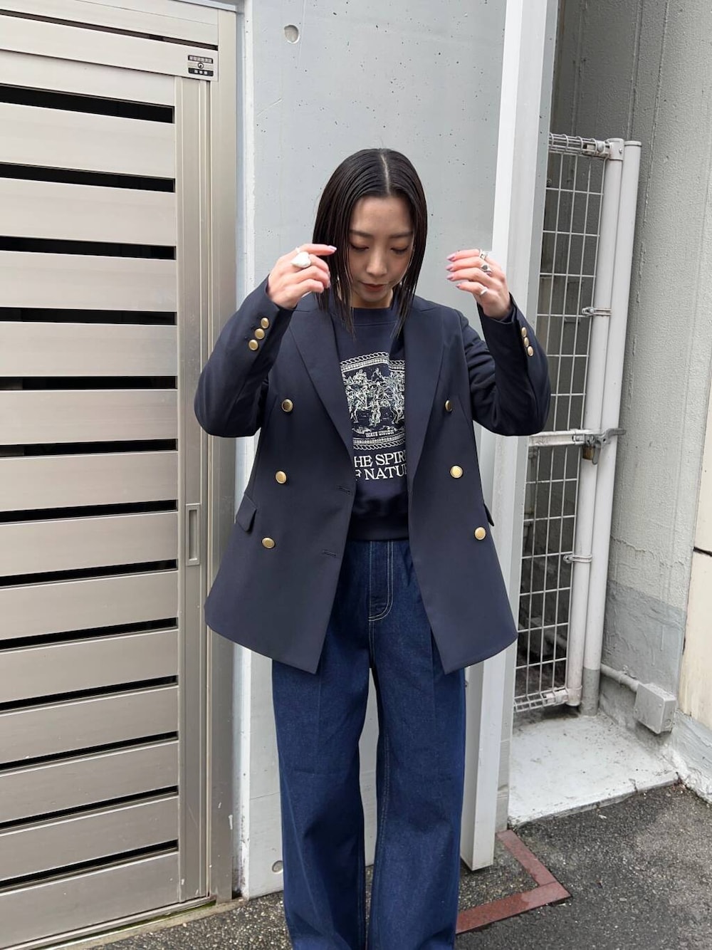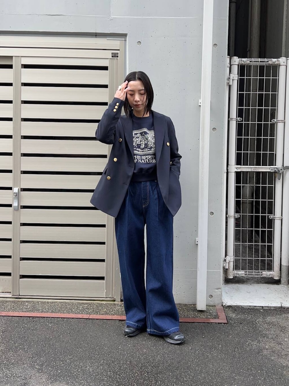 スウェットとデニムもネイビーで統一したことで