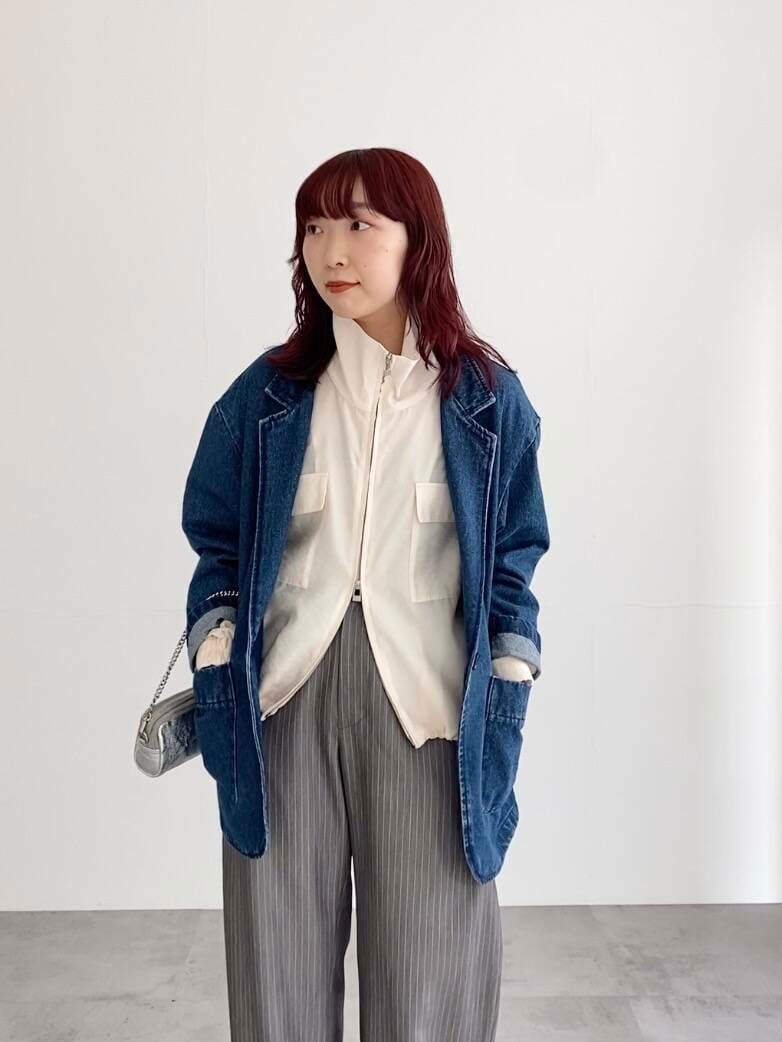 オーバーサイズでゆったり羽織って頂けるので、薄めのブルゾンと重ねて着てみました。