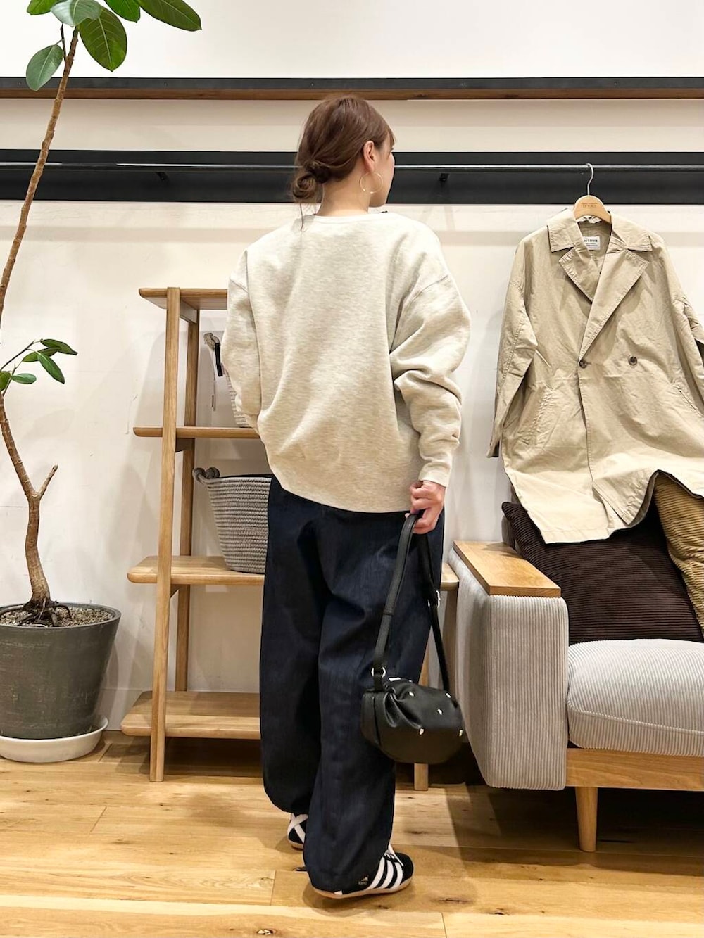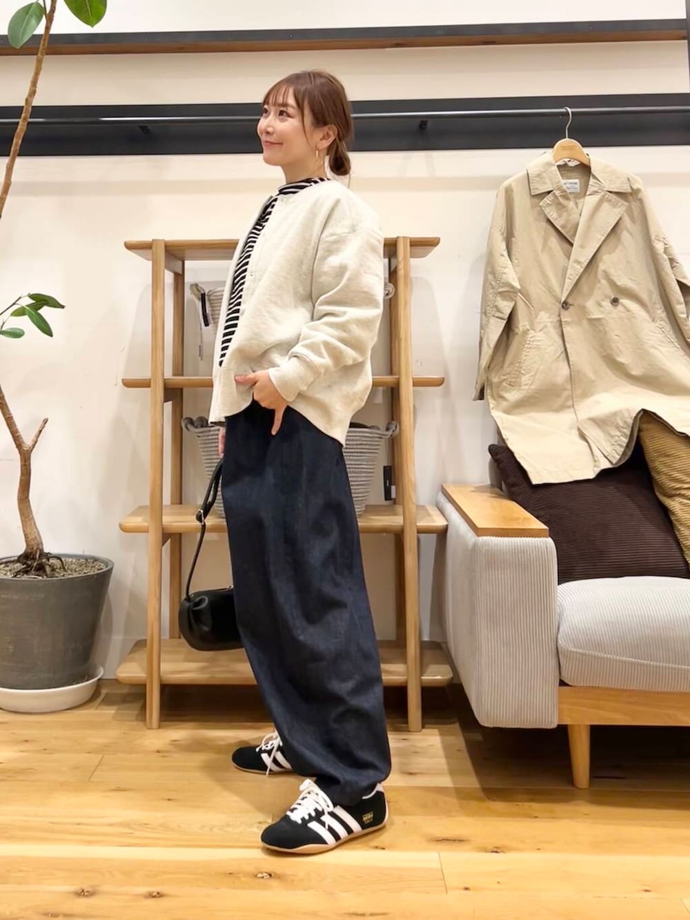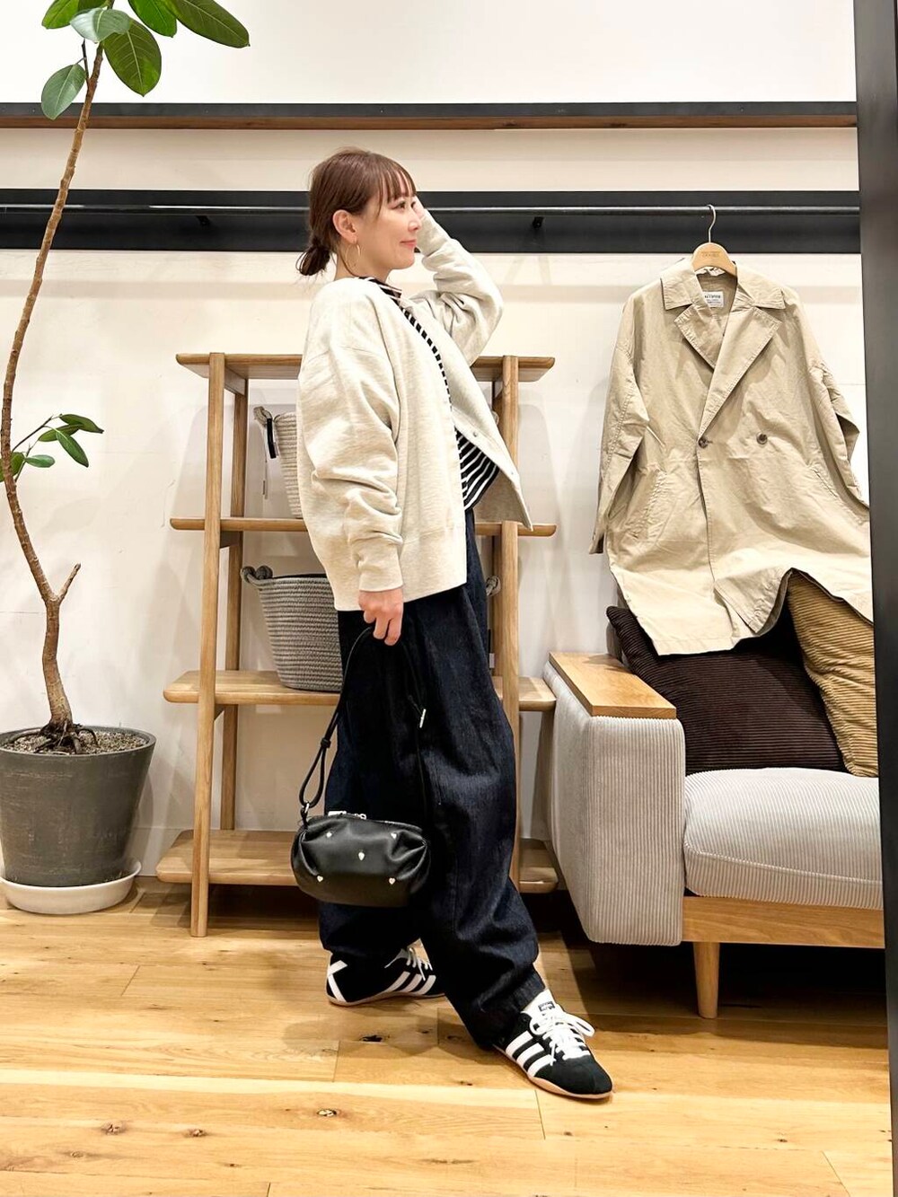 ORCIVAL BOAT NECK LONG-SLEEVE CROPPED PULLOVERはちょっとコンパクトな着丈なのでこんな太めのボトムスにも合わせやすく、小柄さんにもバランスが取りやすくとってもおすすめです◎