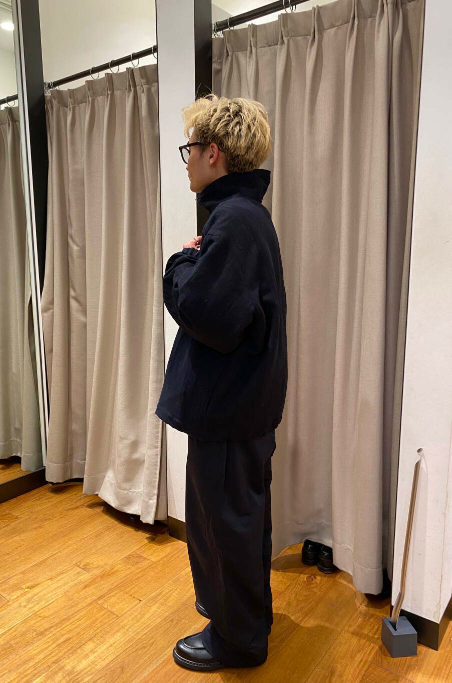 ネイビーのセットアップ風ですが、ブルゾンにストライプがついてる為、オシャレな印象に✨