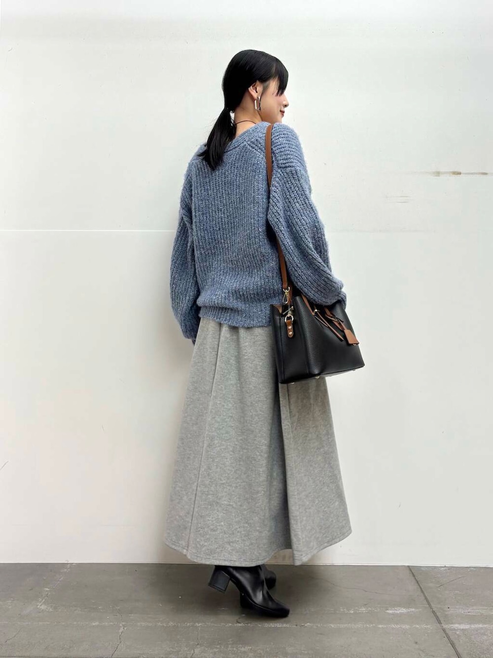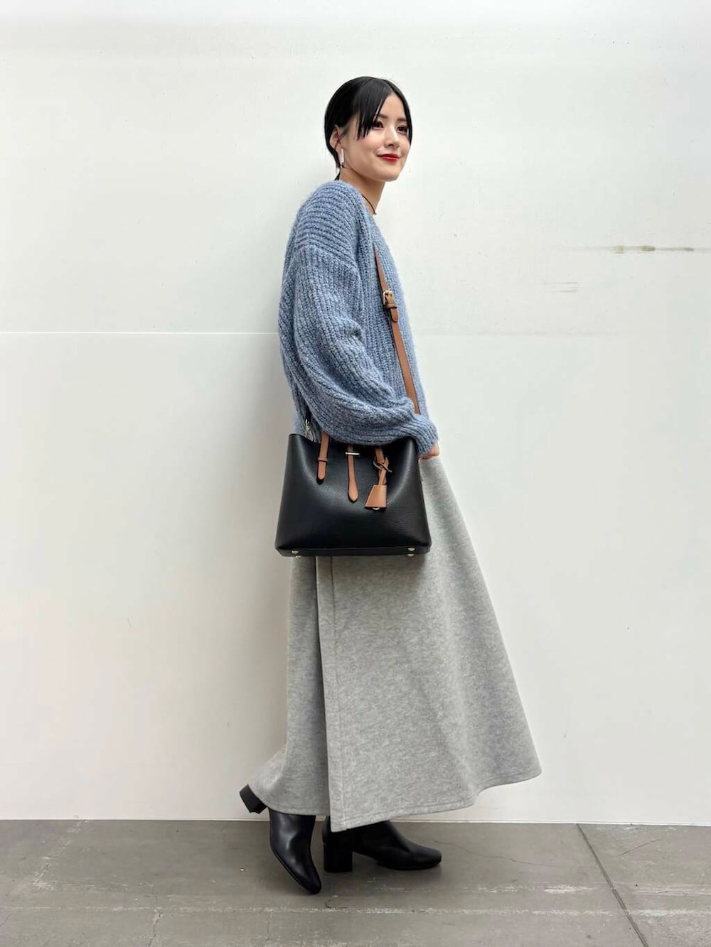 スカートは厚手の素材感で温かくお召しいただけます!