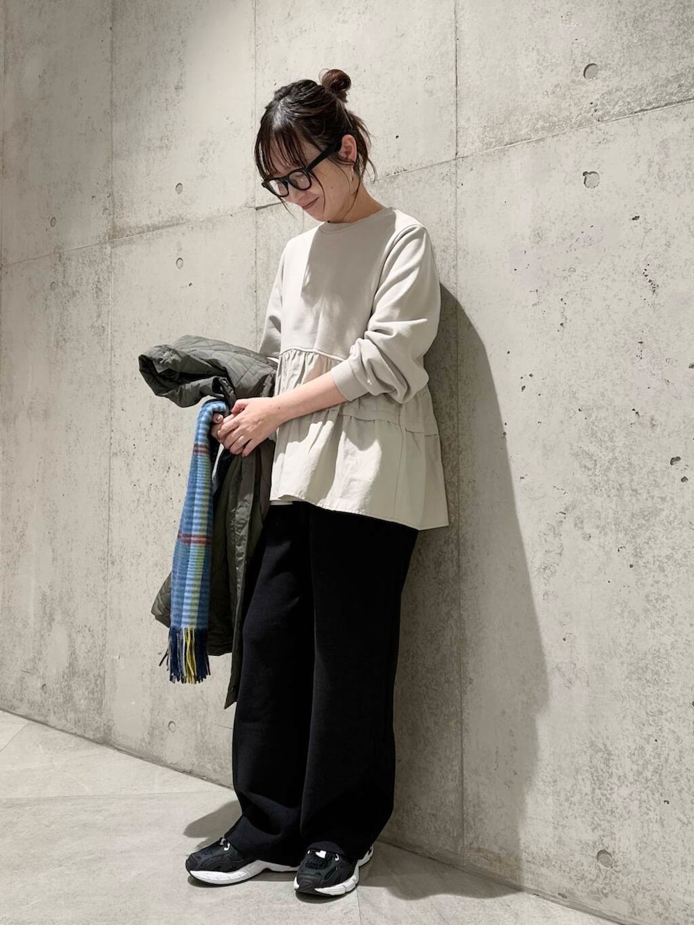 今回は、ティアードデザインが女性らしいプルオーバーを合わせた、大人カジュアルコーディネートです。