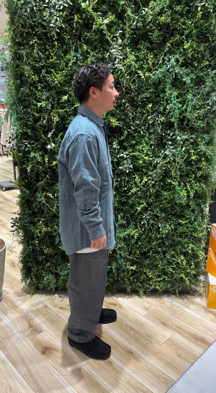 菱形のような変形した織柄をネル生地で表現し、起毛をかけることでアウトドアブランドの雰囲気をまとっています。