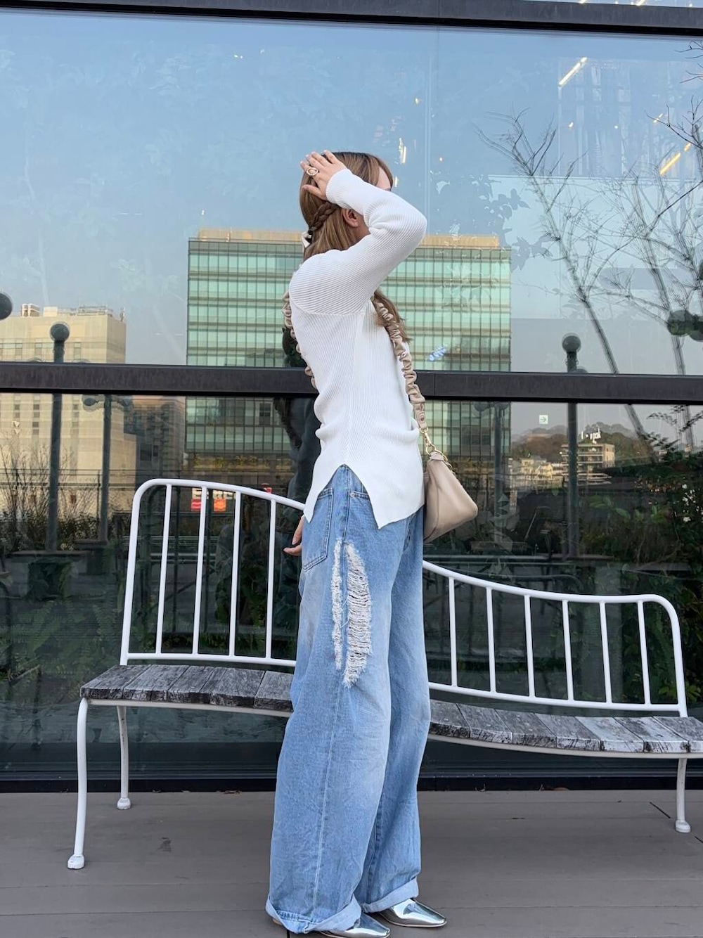 ボトムも大のお気に入りKBFのダメージが可愛いデニムで組んでみました🙌