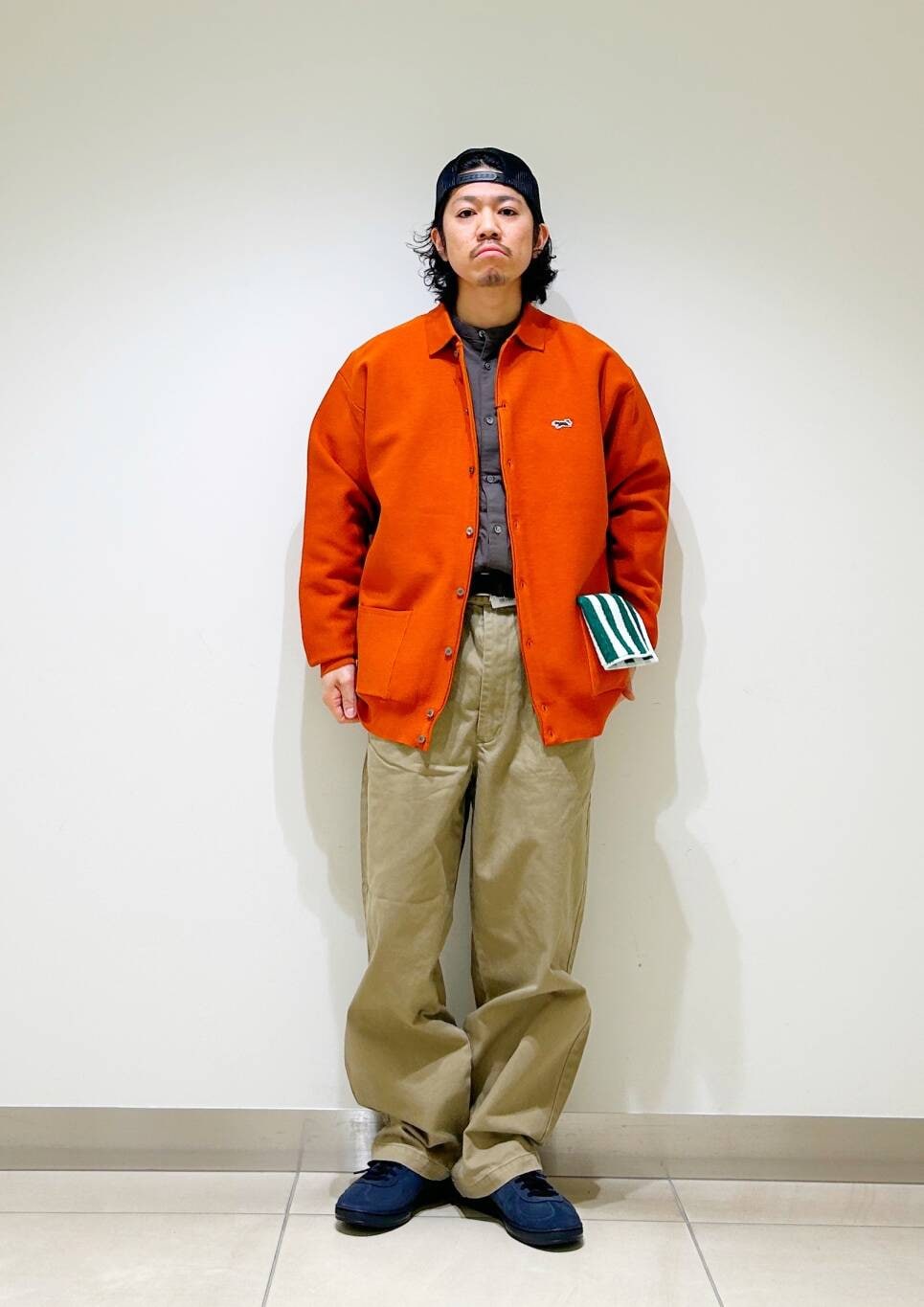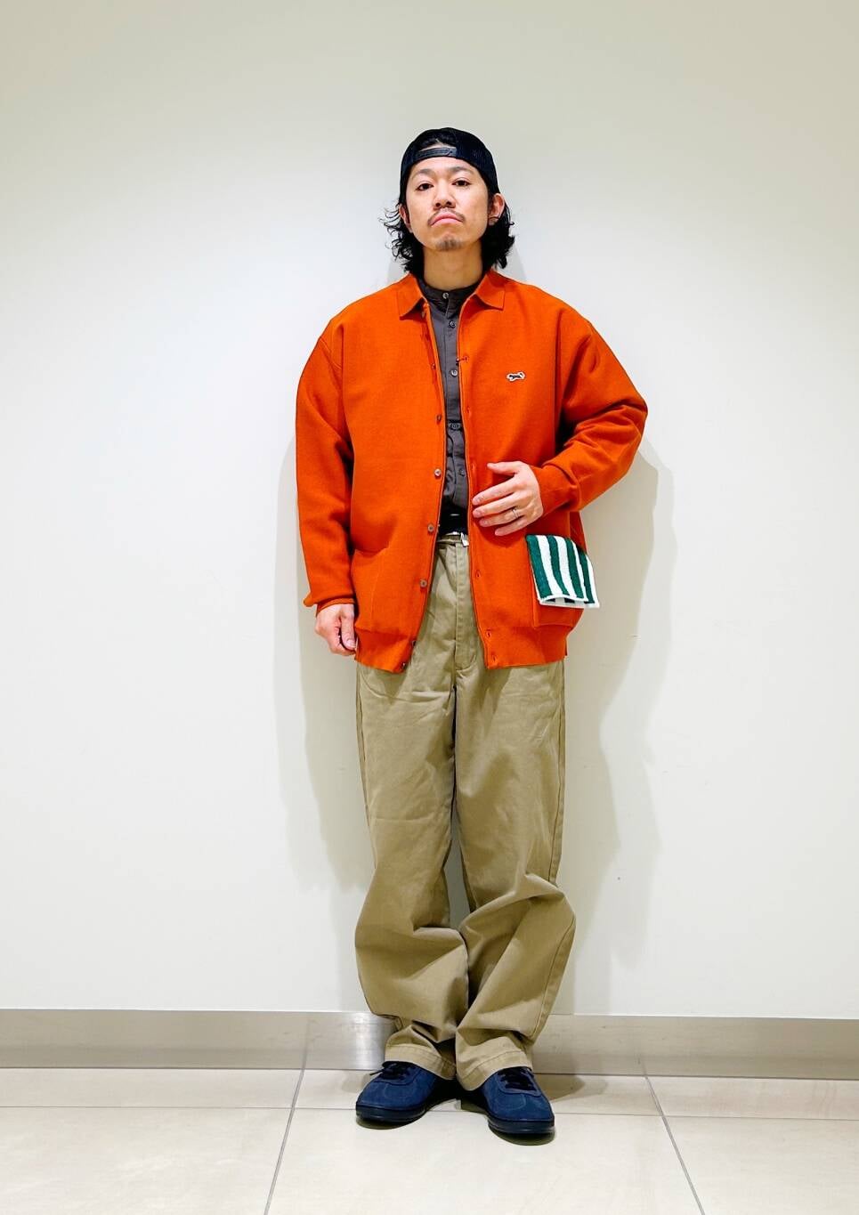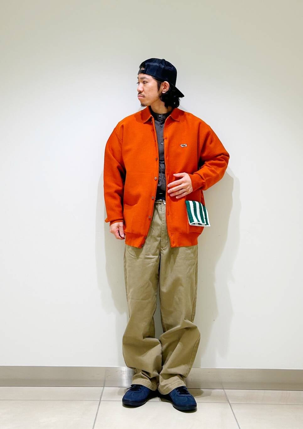 今回はfoxシャツカーディガンとチノパンを使用したコーディネート。