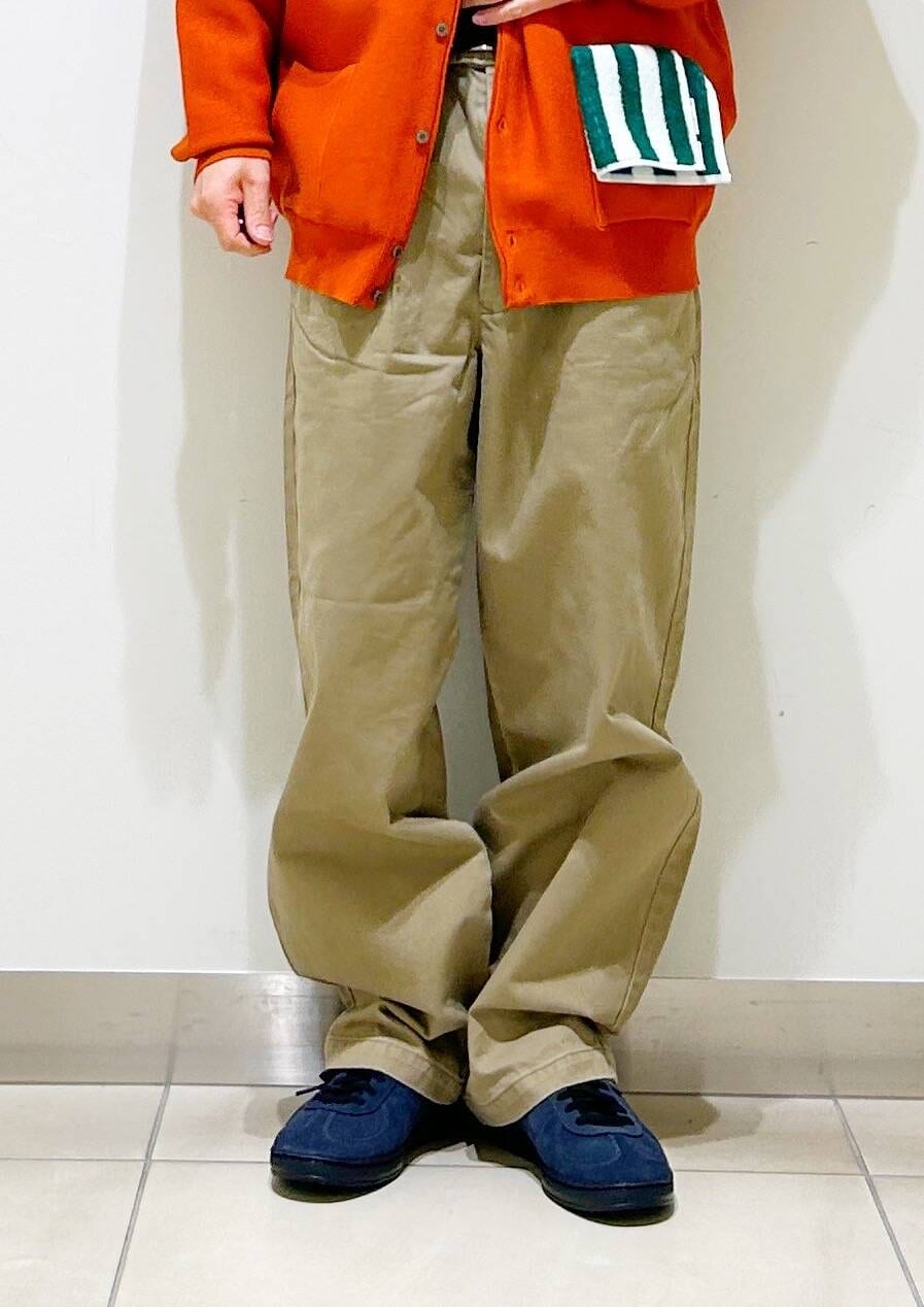 50年代のフランス軍のチノパンを細部まで分析することで忠実に再現したフレンチドリル素材を使用したチノパンツ。