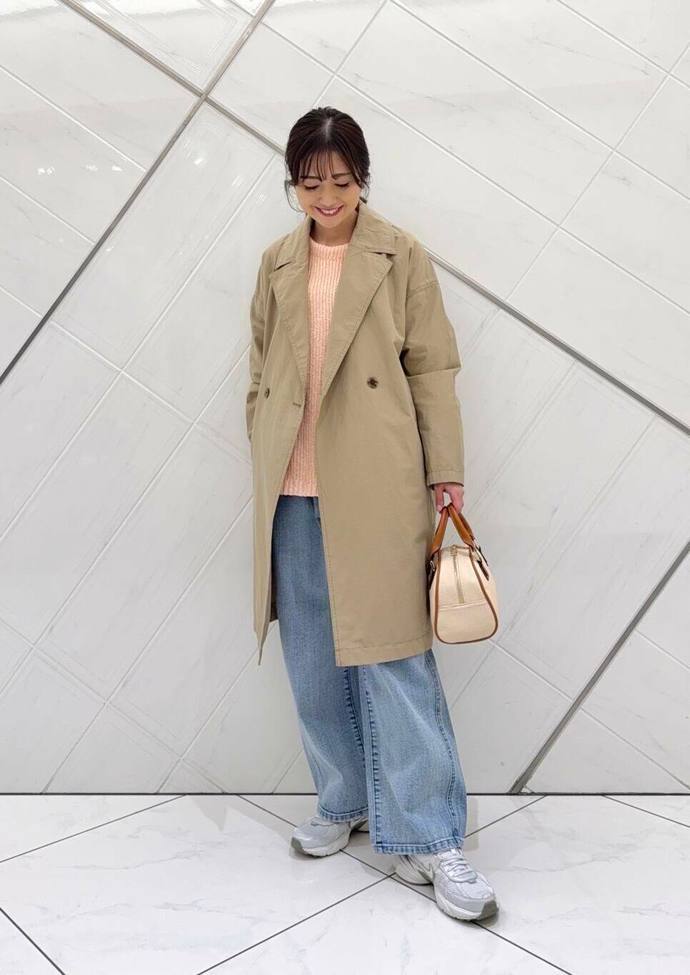 ボトムスを選ばず、ヒップがほぼ隠れる着丈です。