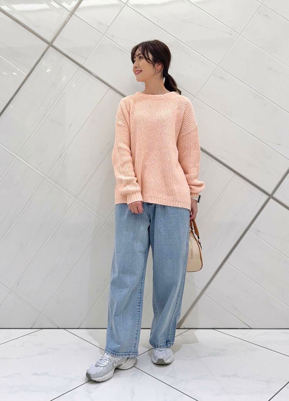 ニットはドライタッチな肌触りで程よいルーズ感が可愛らしいアイテムです。