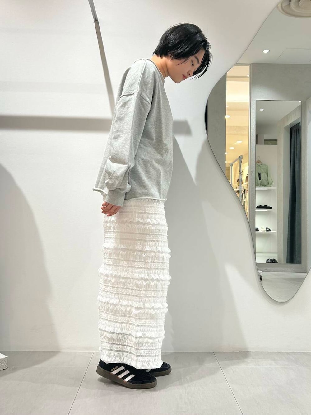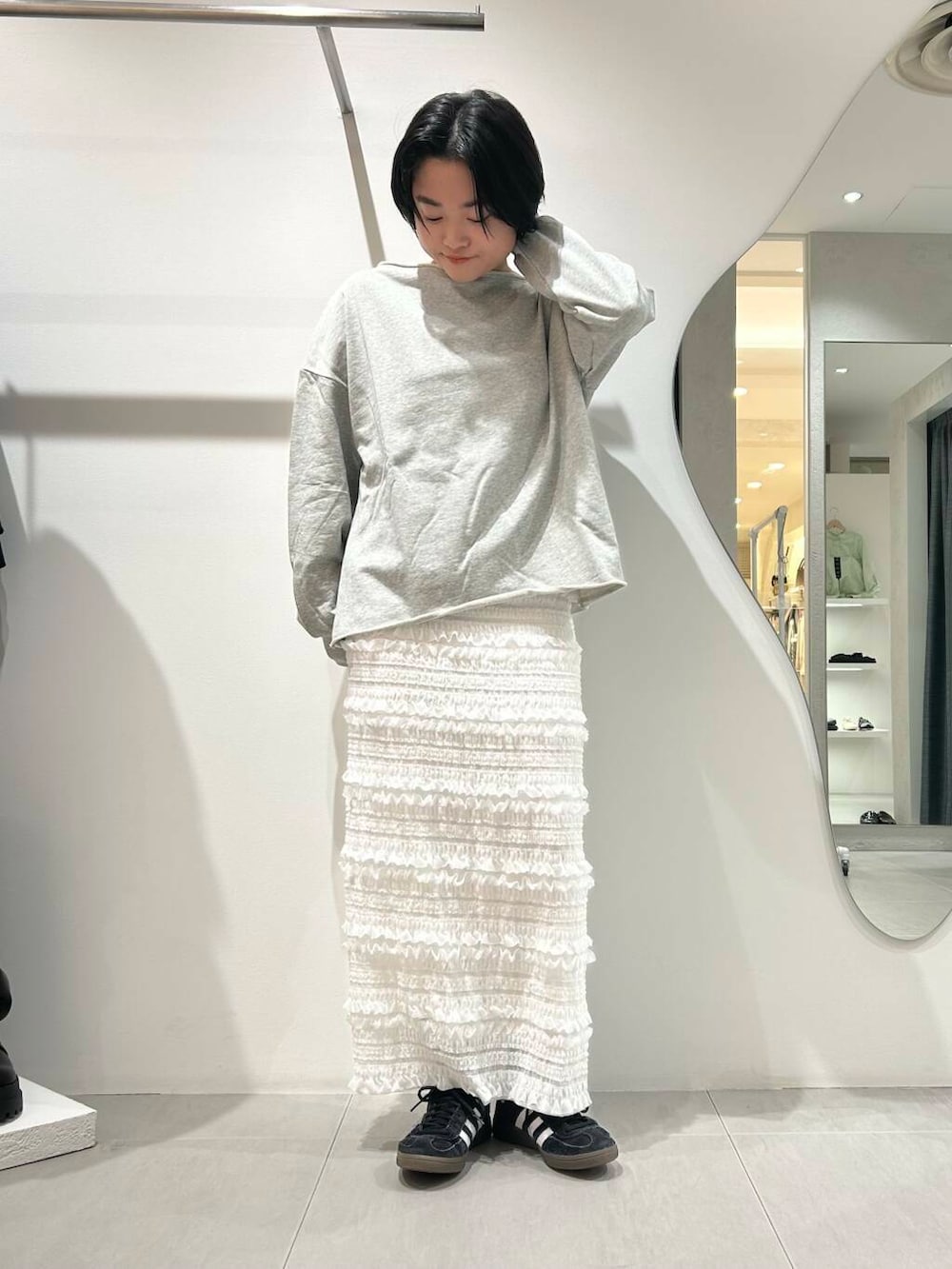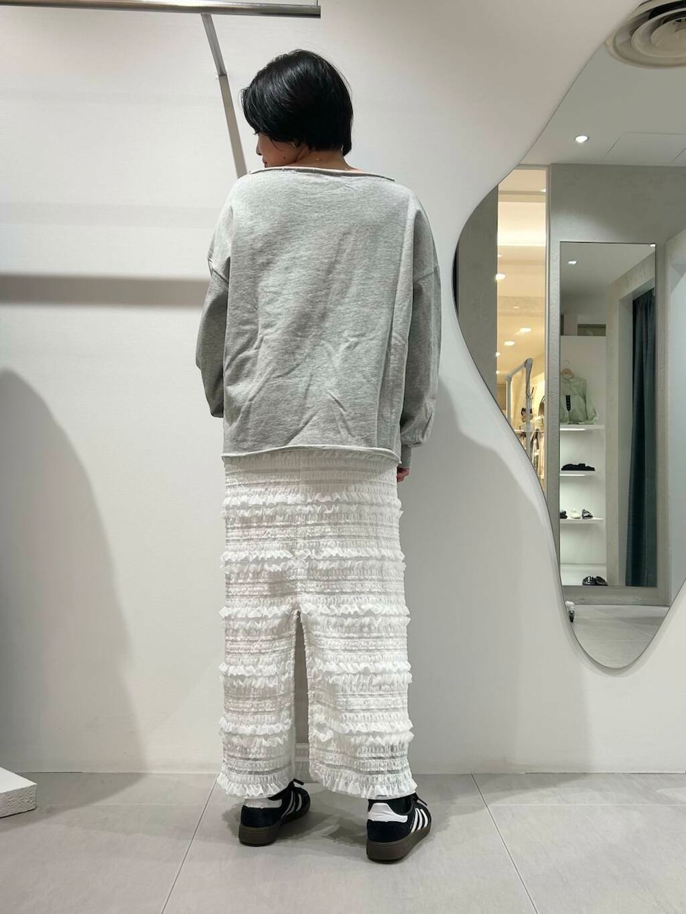 フリルのデザインで少し甘さありますが、カジュアルなスウェットとの合わせが私好み😌