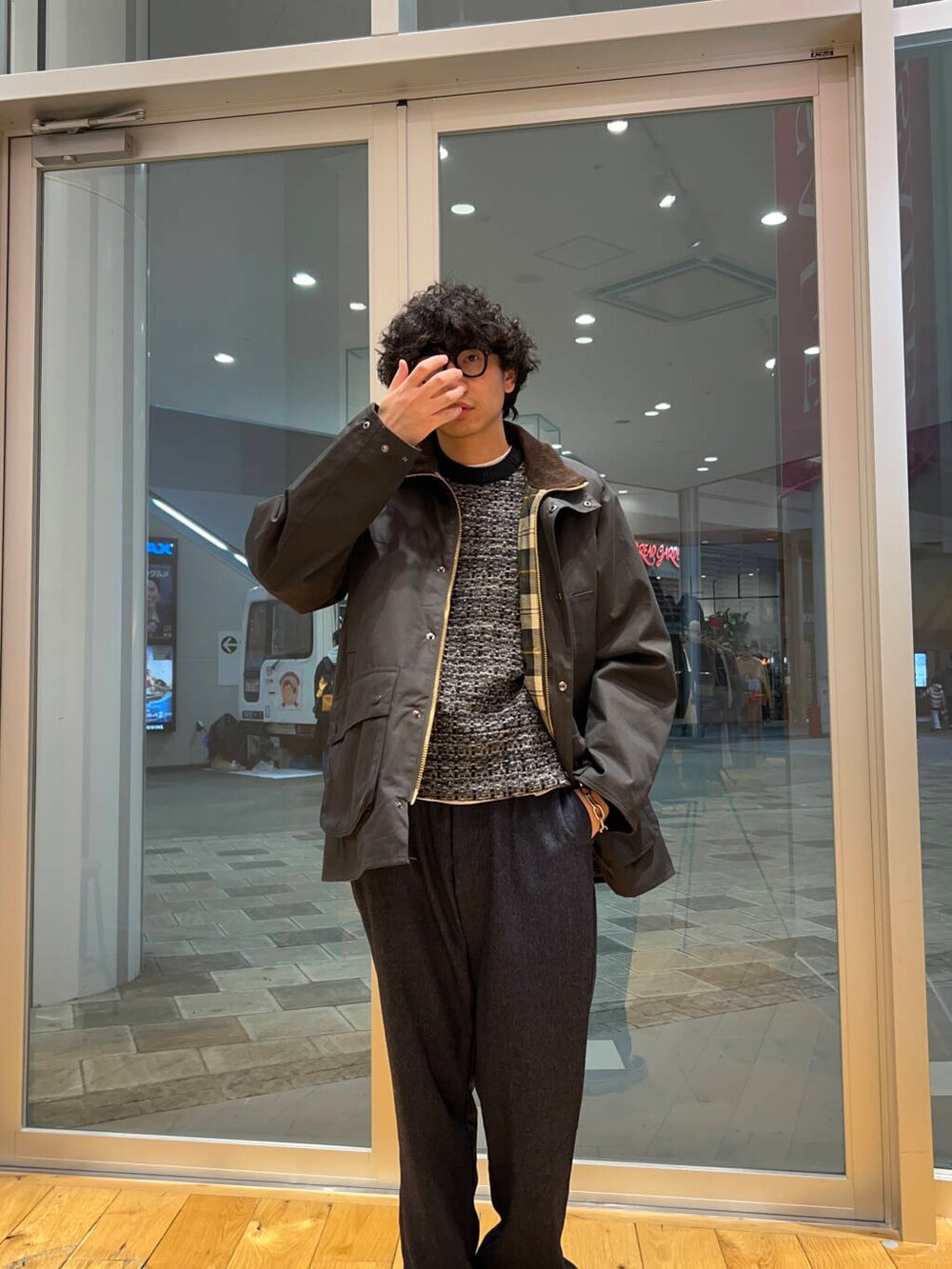 BARBOURに柄ニットで綺麗めカジュアルスタイル。