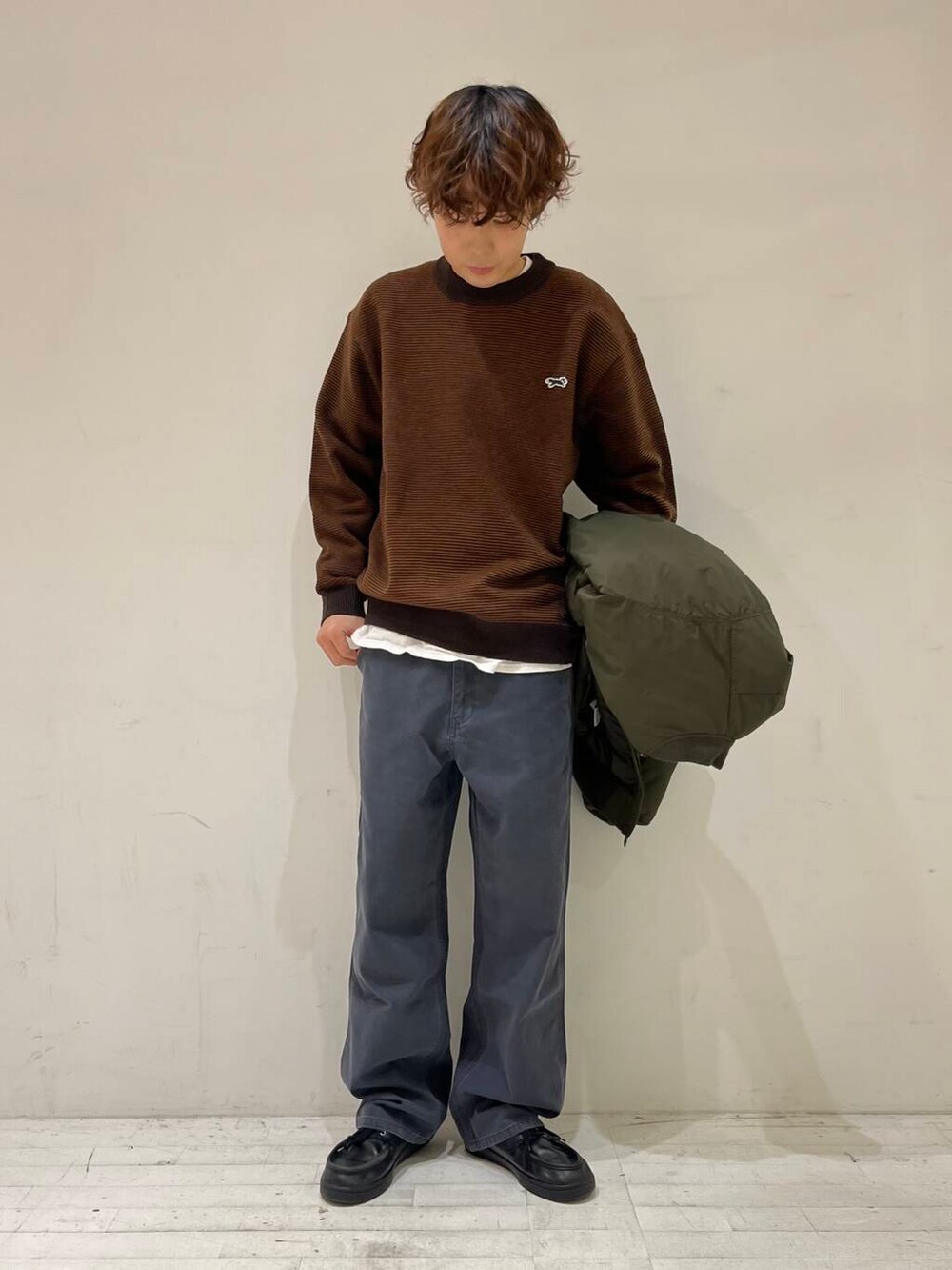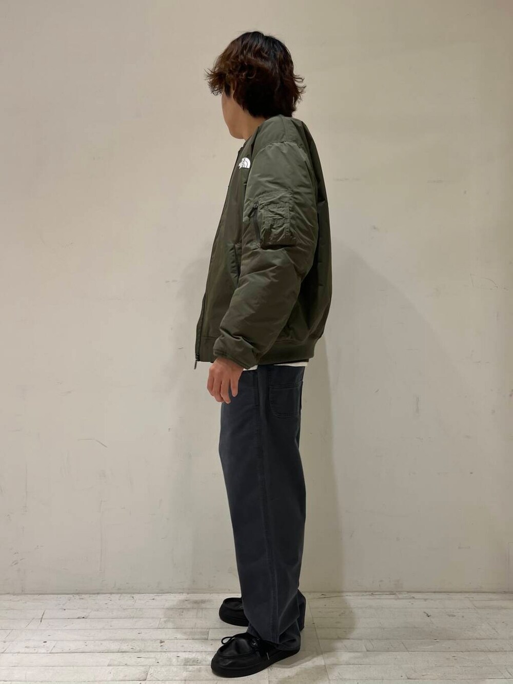オレンジのボーダーのニットに、カーキのブルゾンを合わせてカジュアルコーデです🍊