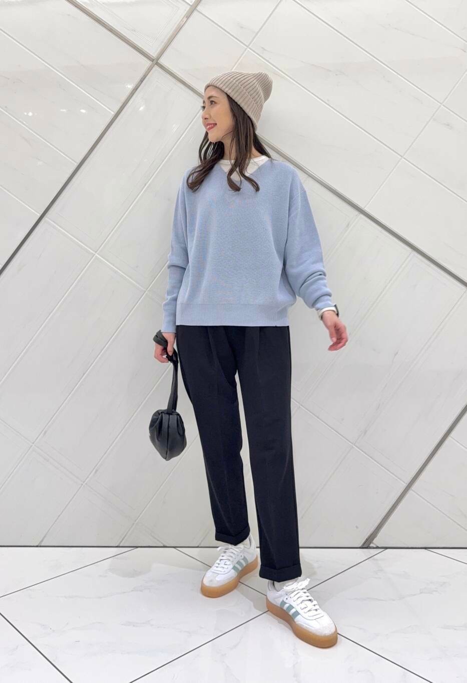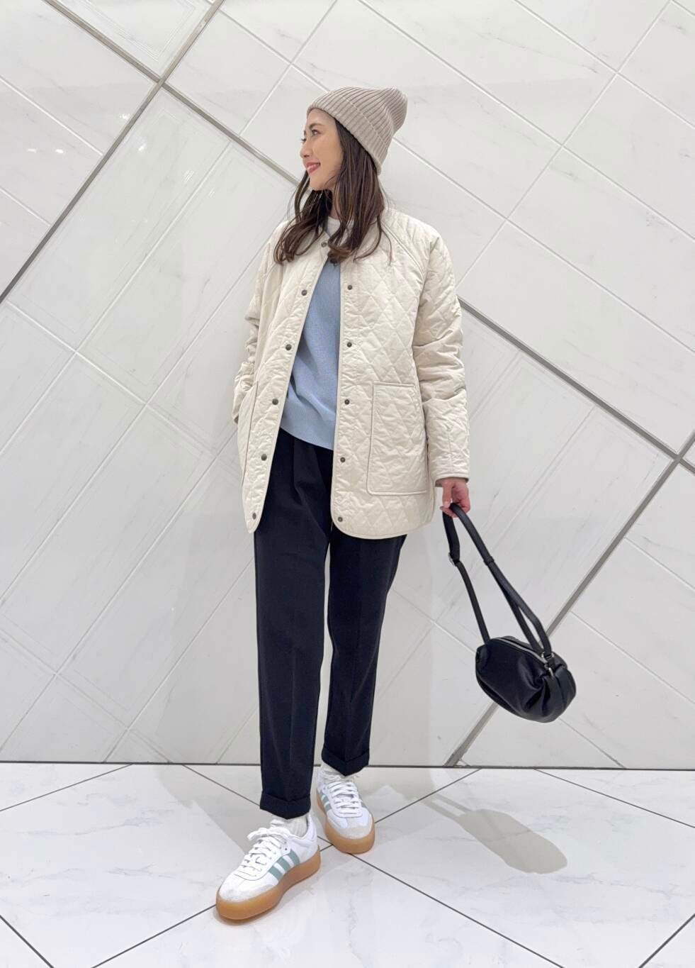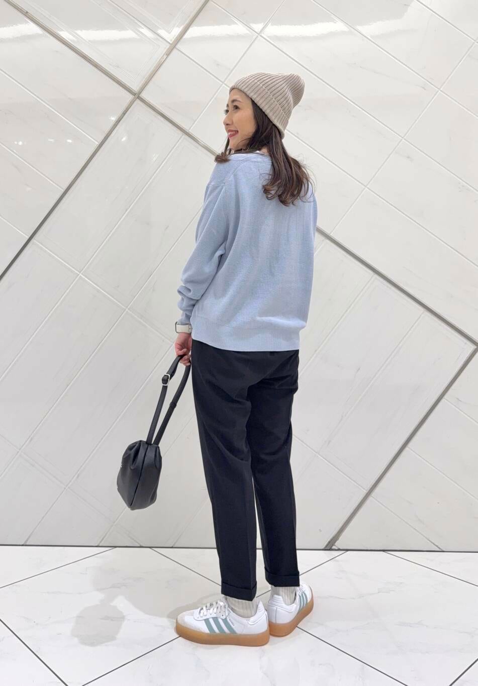ボトムも毎シーズン人気のパンツで細身のシルエットでスタイルよく見えます。