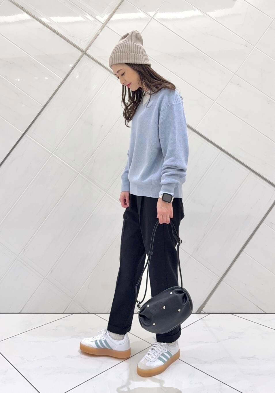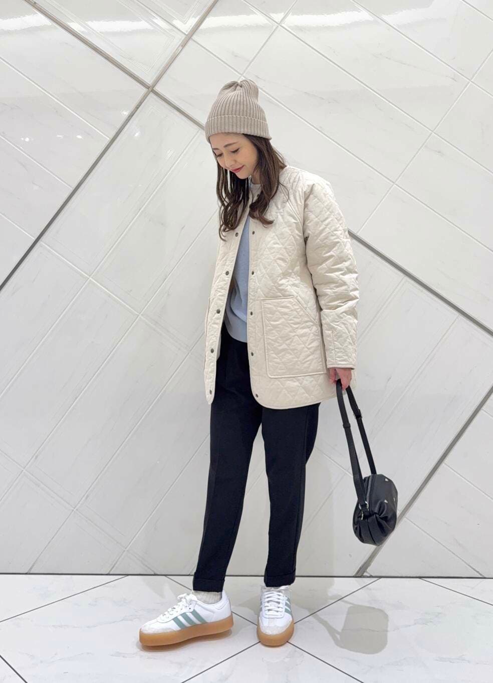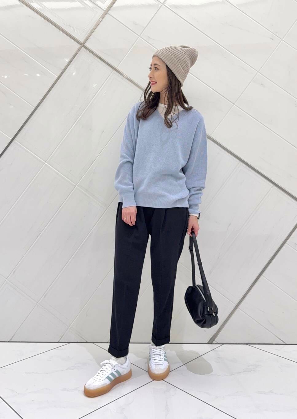 ボトムも毎シーズン人気のパンツで細身のシルエットでスタイルよく見えます。