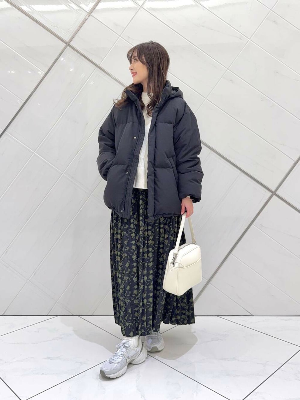 ダウンはとても軽く、Sサイズでもゆったりめなので厚手のトップスの上からでも羽織りやすいです。