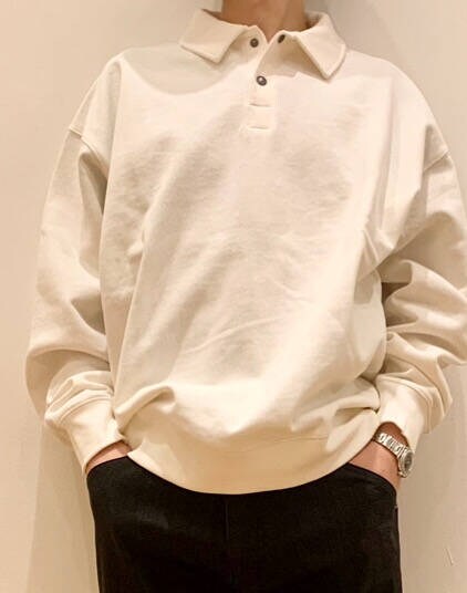 今回は裏毛スウェットポロプルオーバーを使ったコーディネートです。