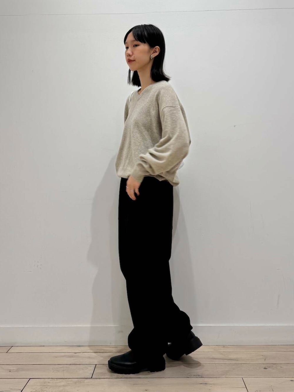 下半身カジュアル感強めなので、Vネックニットのインナーは無しで少し肌見せしました^ ^