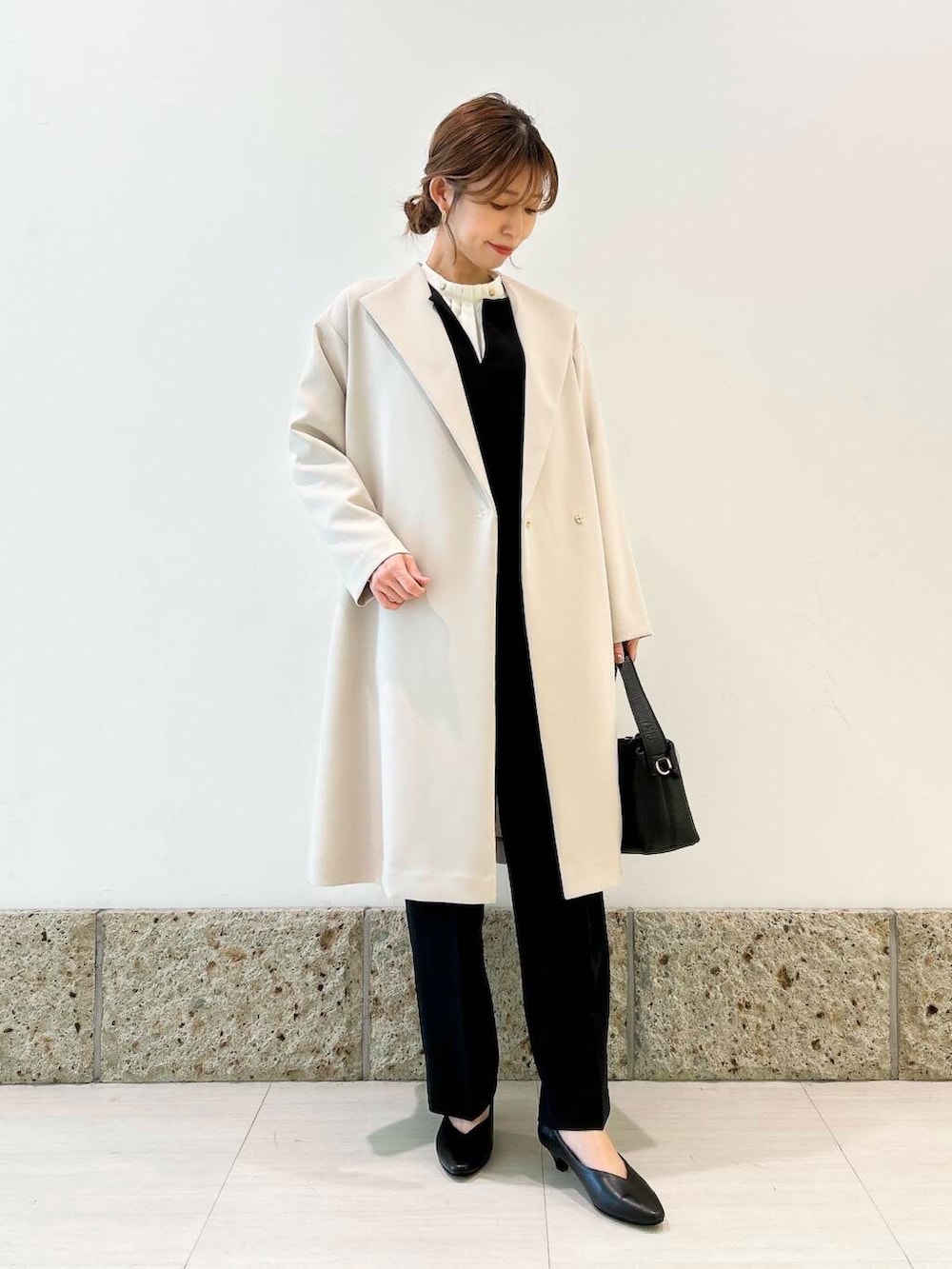 合わせるブラウスは、今回着用したような首元に高さのあるデザインのものが、華やかさとオシャレさが出てオススメです◎