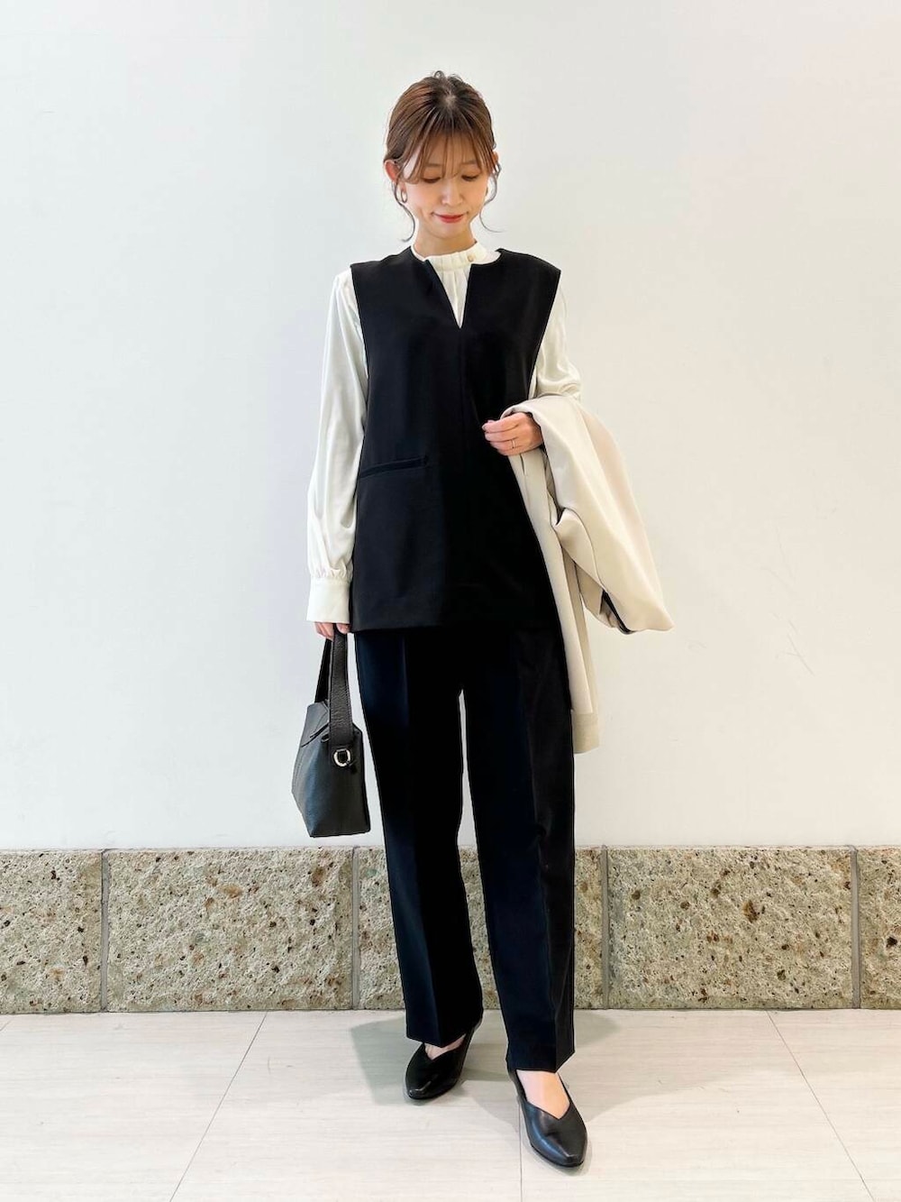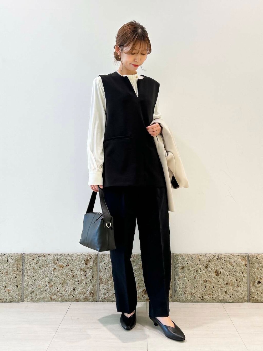 ベストは、シンプルながらもサイドのスリットや首元の絶妙なVネックラインが上品さとオシャレさを演出してくれます✨