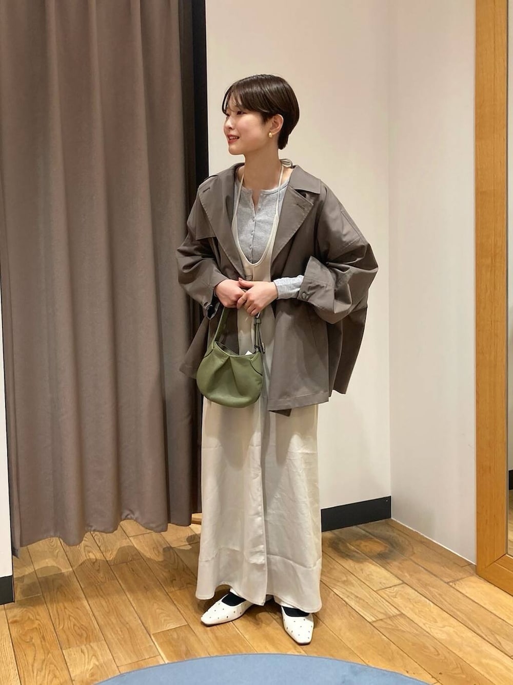 トレンチはミドル丈のものを選びスッキリとした印象に!!