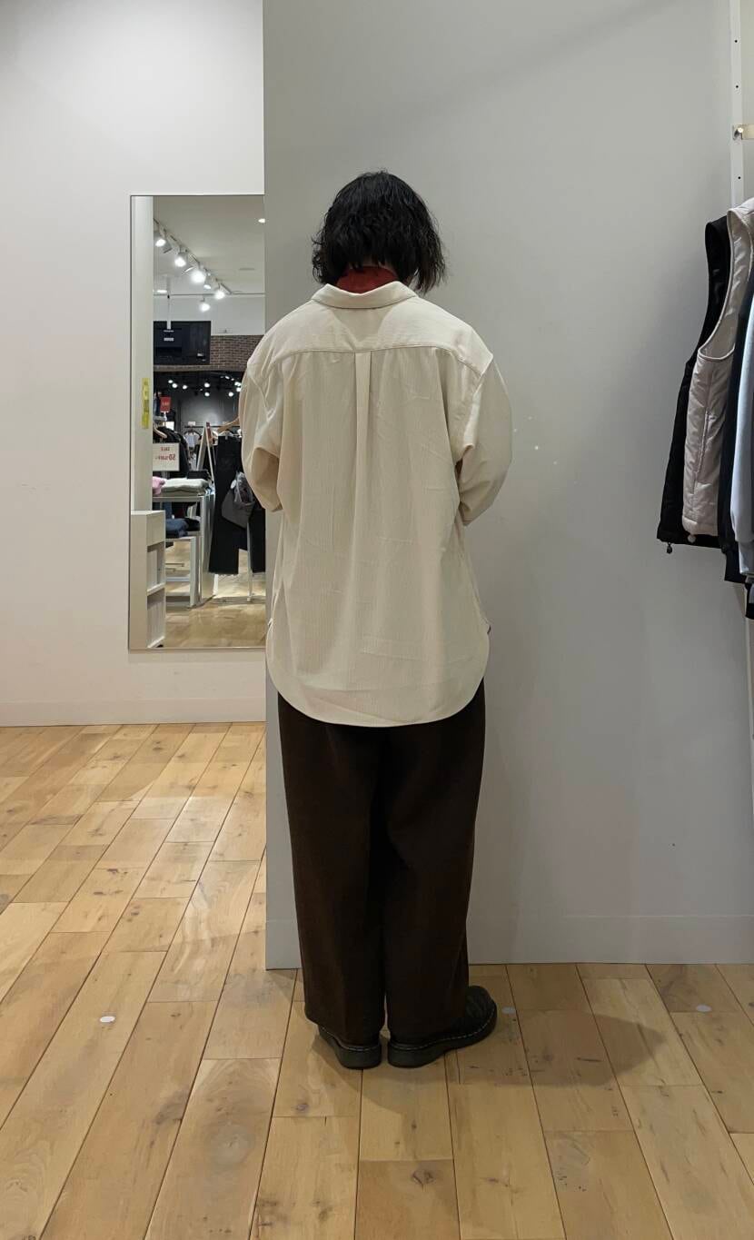 ワイドでしっかりとテーパードの効いたメルトンスラックス。きれいめにもカジュアルにも使えます。