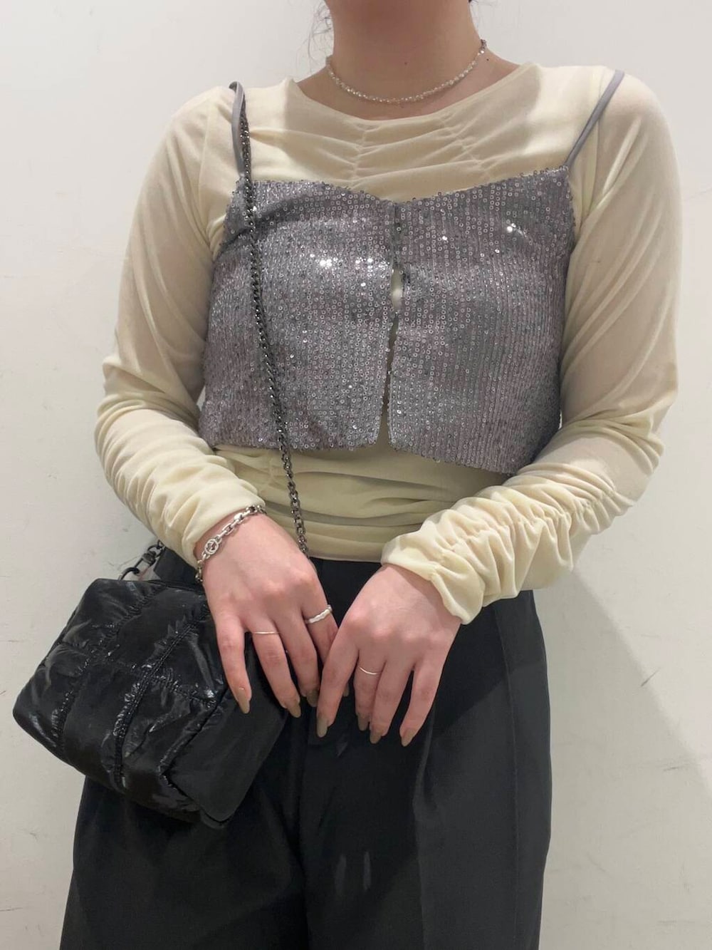 スパンコールビスチェはフロントホックになってるので着脱しやすいです!カジュアルコーデにも特別コーデにも使い回しできます♪