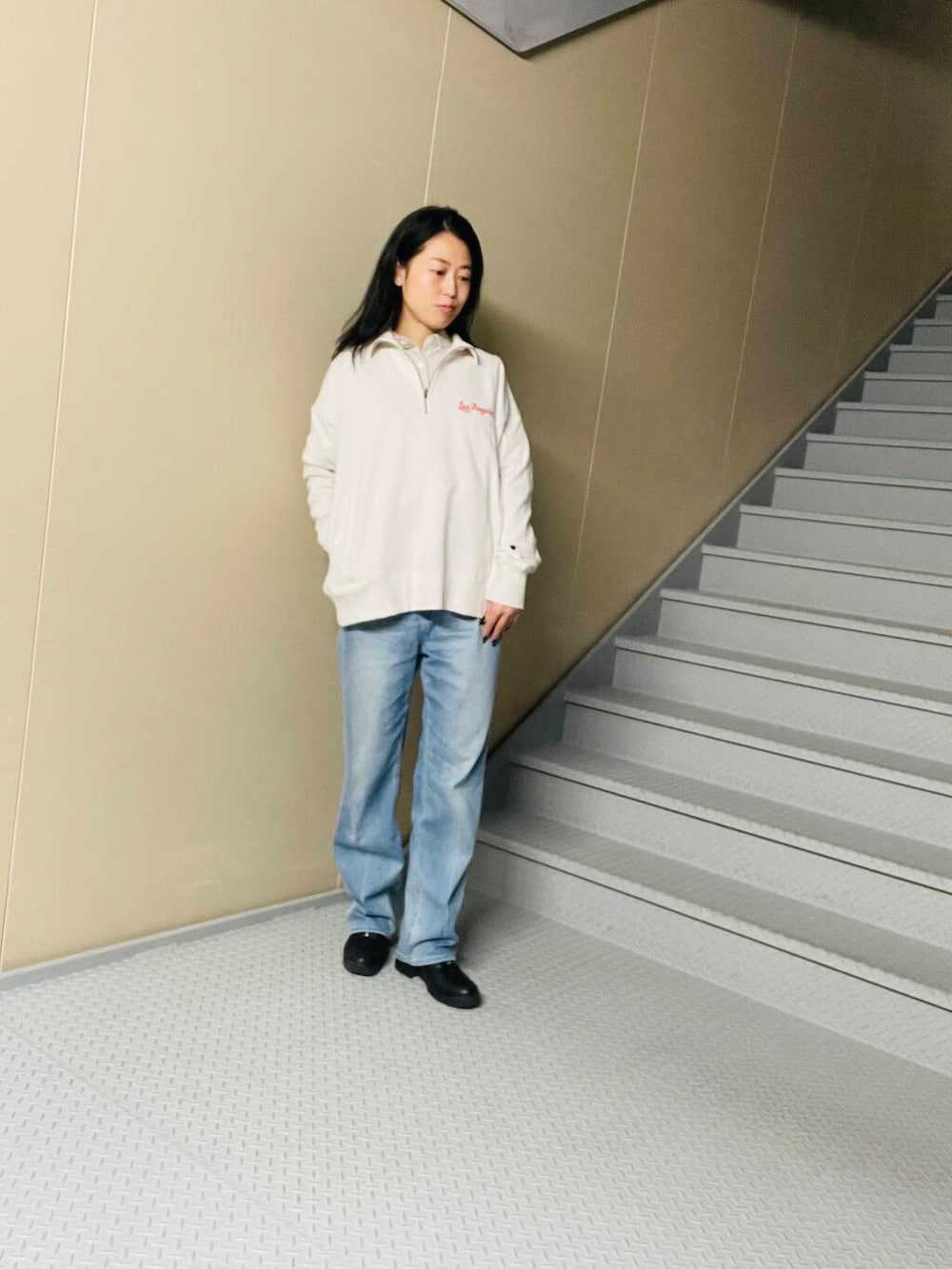 championのロゴスエットはハーフジップなのでインナーに新作のカラーシャツをきました!
