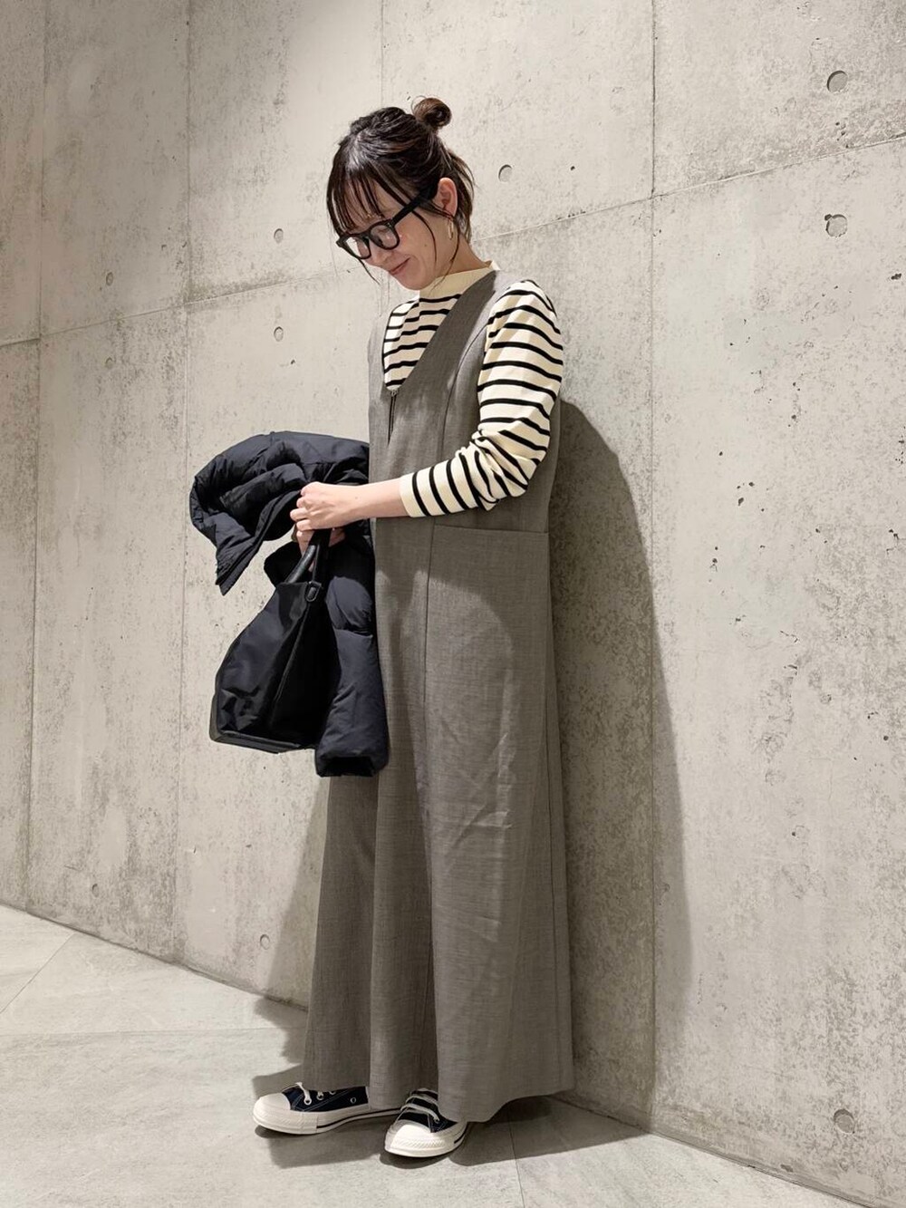 今回は、ジャンパースカートと合わせた、大人カジュアルコーディネート。