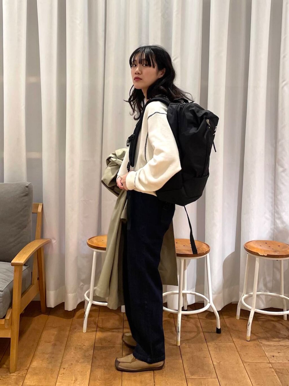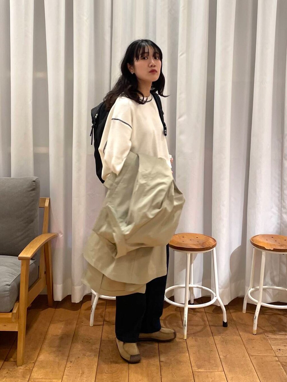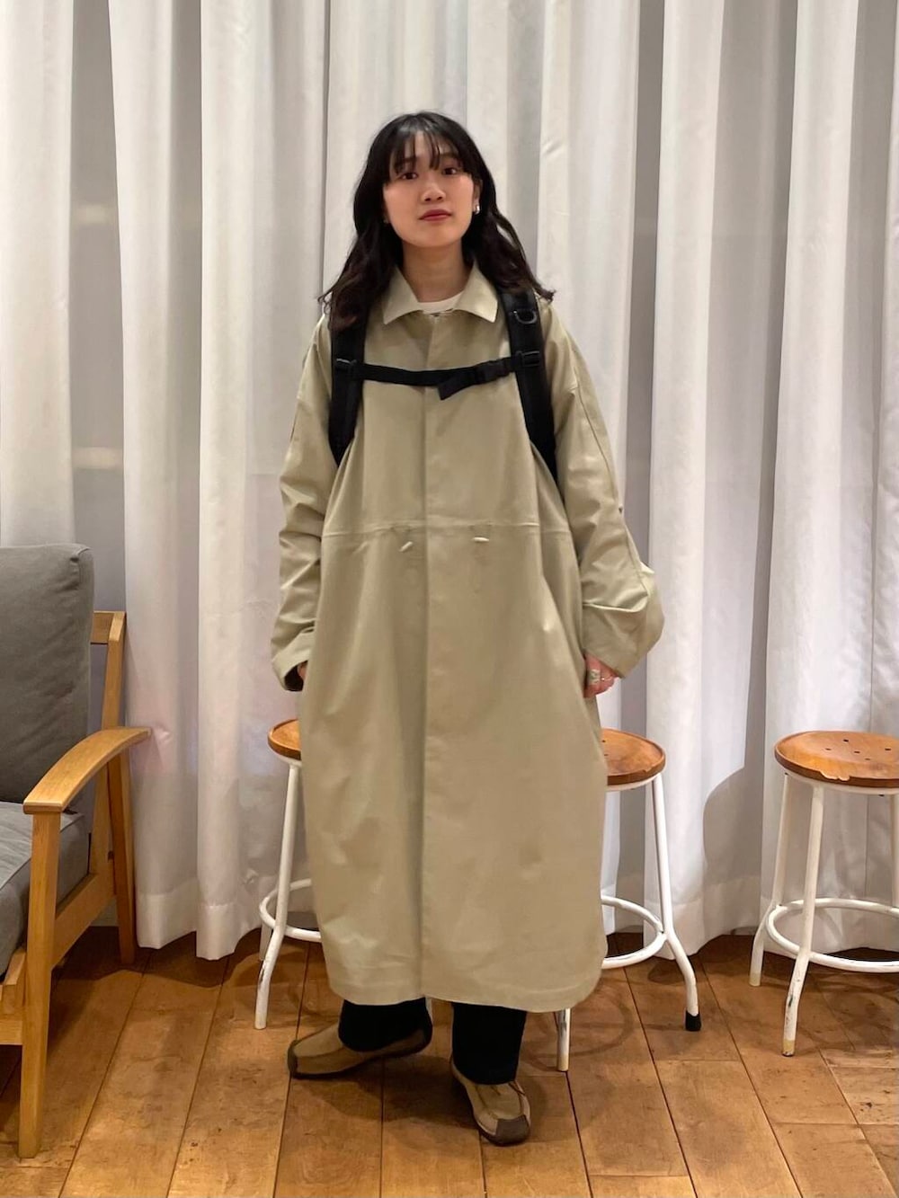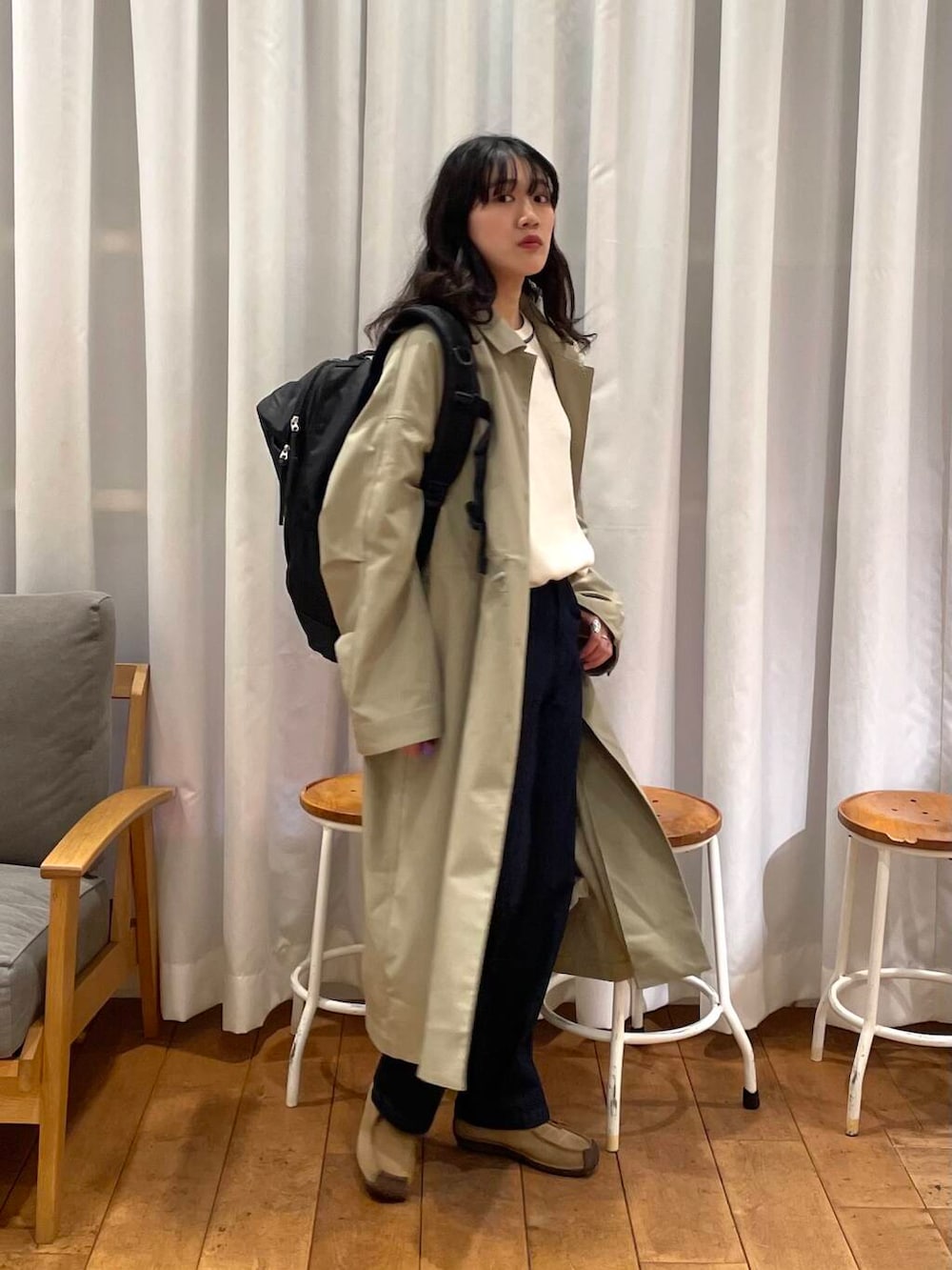 EKALのステンカラーコートとURDバックパックの合わせが好きです✊🏻
