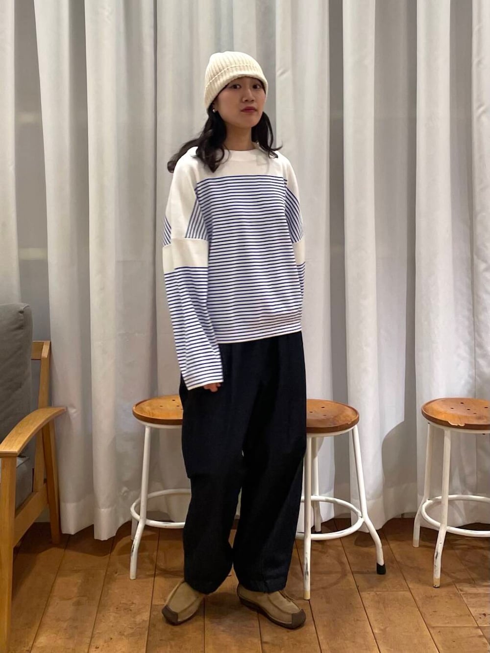 大きめのシルエットなので、あえてダボダボしたボトムスを履いてルーズに着こなしたいです✨