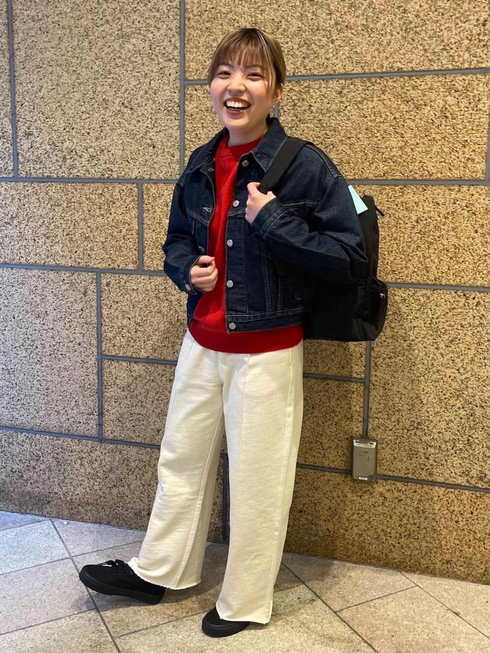 白パンツのシルエットがとても綺麗でしたのでトップスが短めでもまとまり感があるコーデに仕上がります☺️
