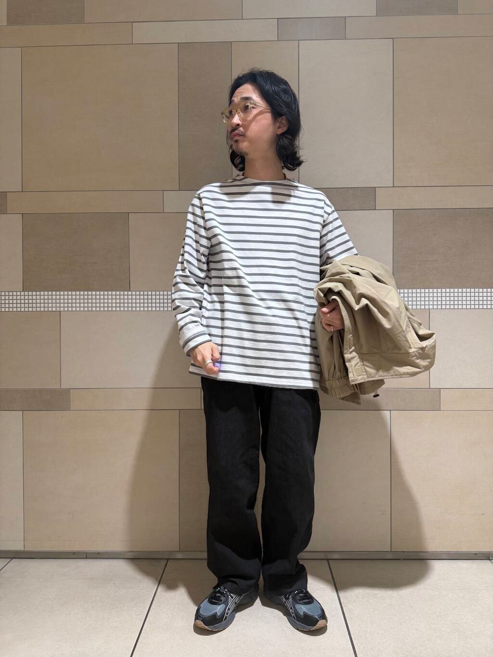 定番のボートネックボーダーとスタンドカラーブルゾンでシンプルなコーディネートを組みました!