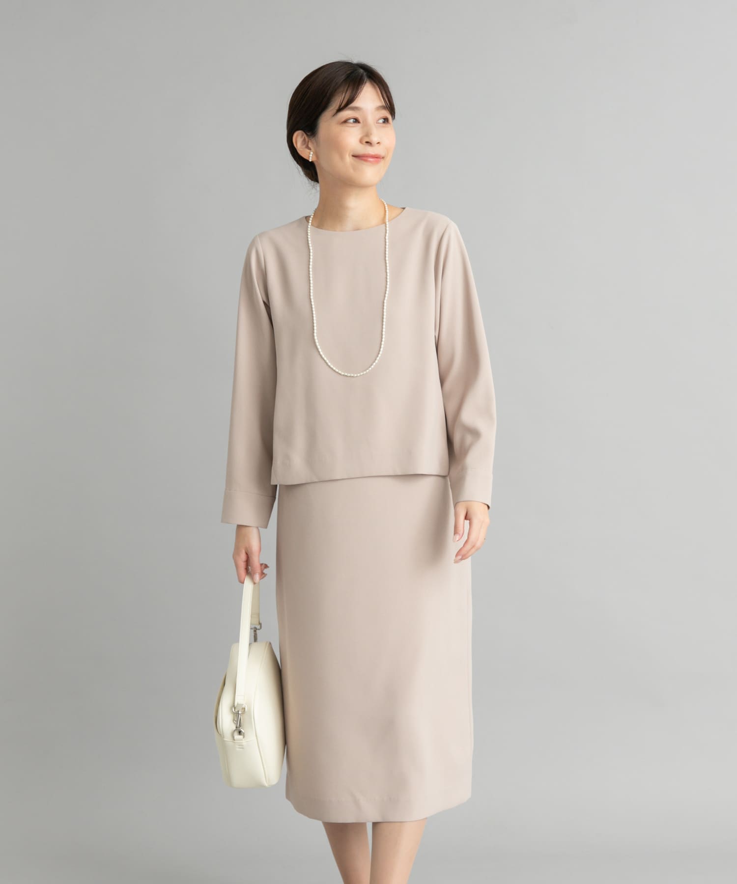 上品な生地感で体のラインを拾わずに綺麗に落ち感が出るのですっきり着ていただけます。