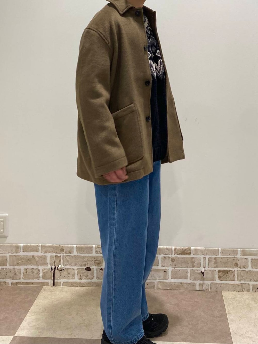 今回のコーデはショートコートをメインに組んでみました!落ち着いた色味なので、インナーを柄物で少しインパクトのあるものを選んでます!