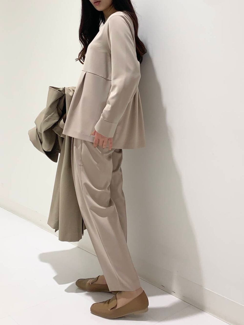 トップスのペプラムは程よく広がりがあるのでお腹周りがカバーされるかと思います!