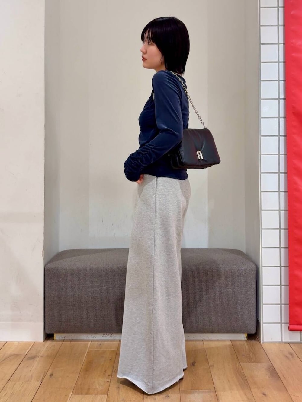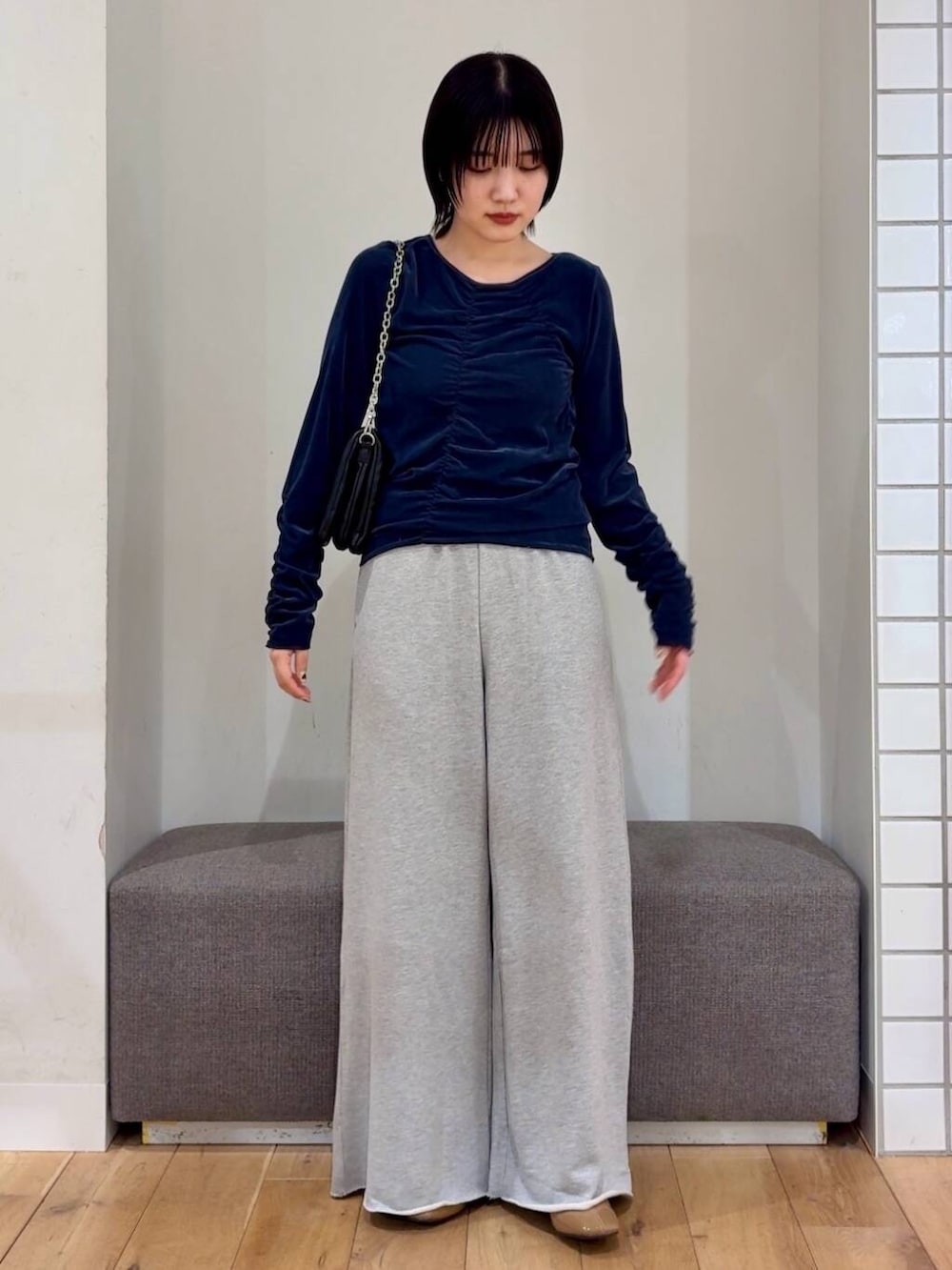 トップスはシャーリングデザインで1枚だけでも映えるアイテムです⚪︎