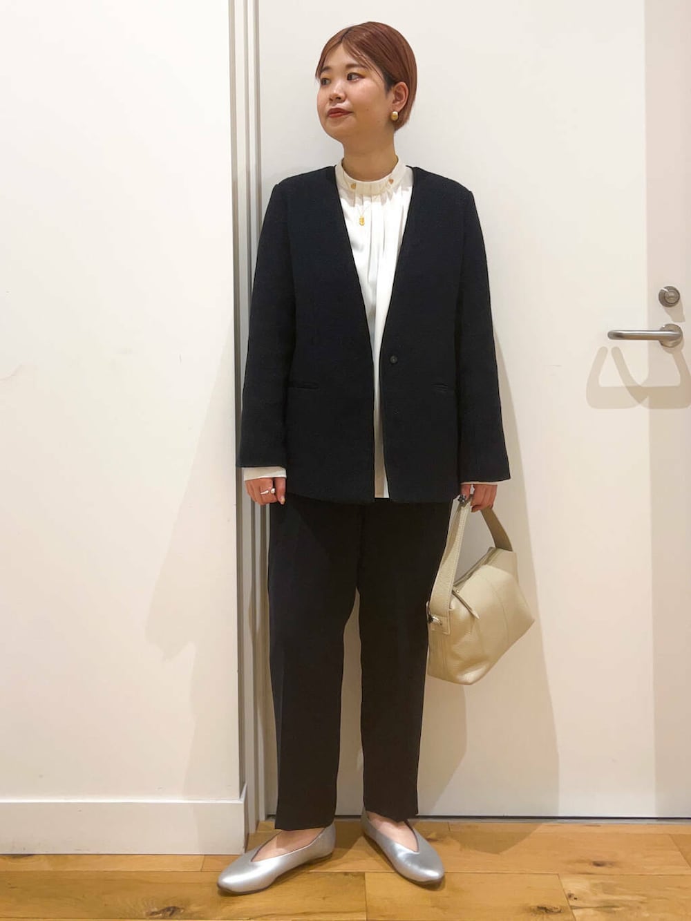 ジャケットもジャストサイズなので、スッキリとした印象に。